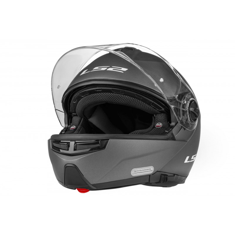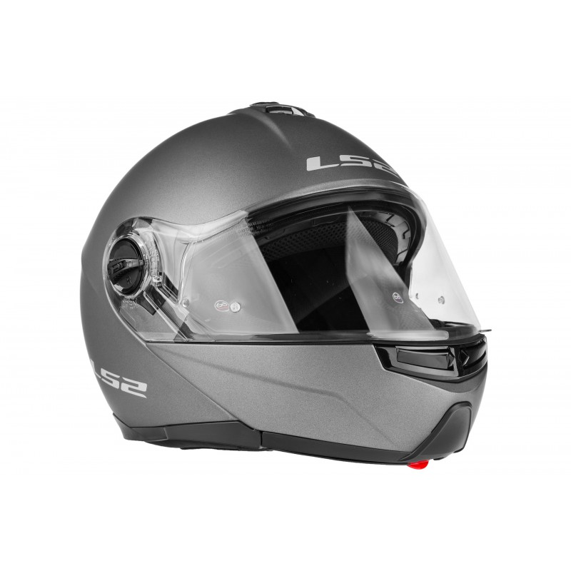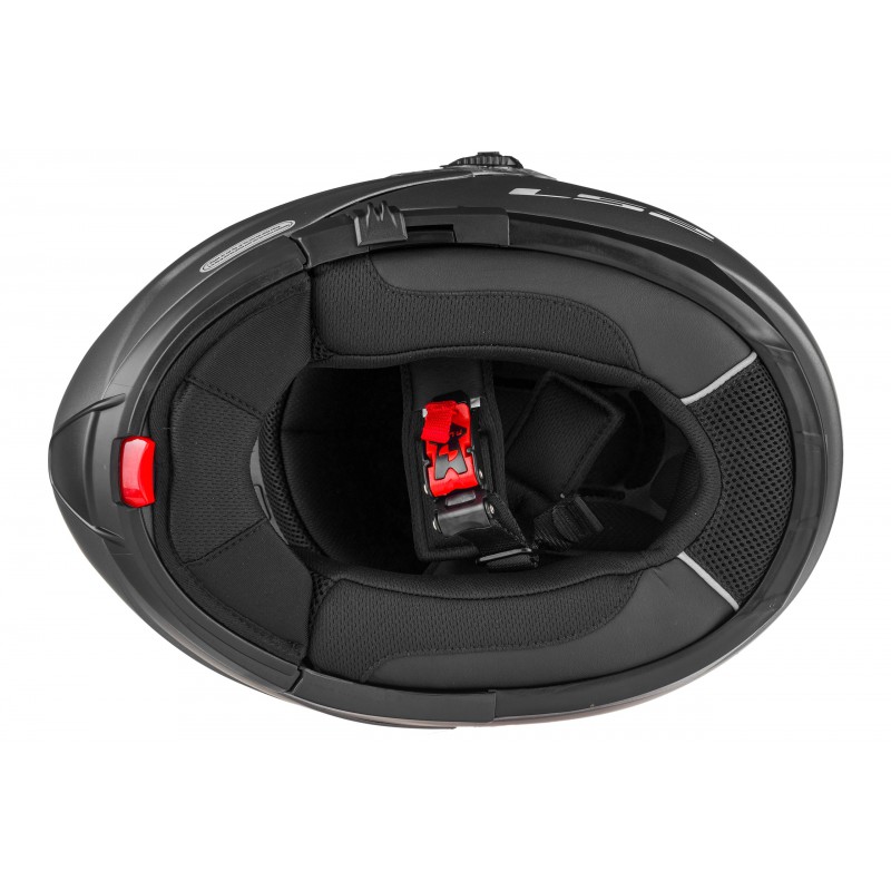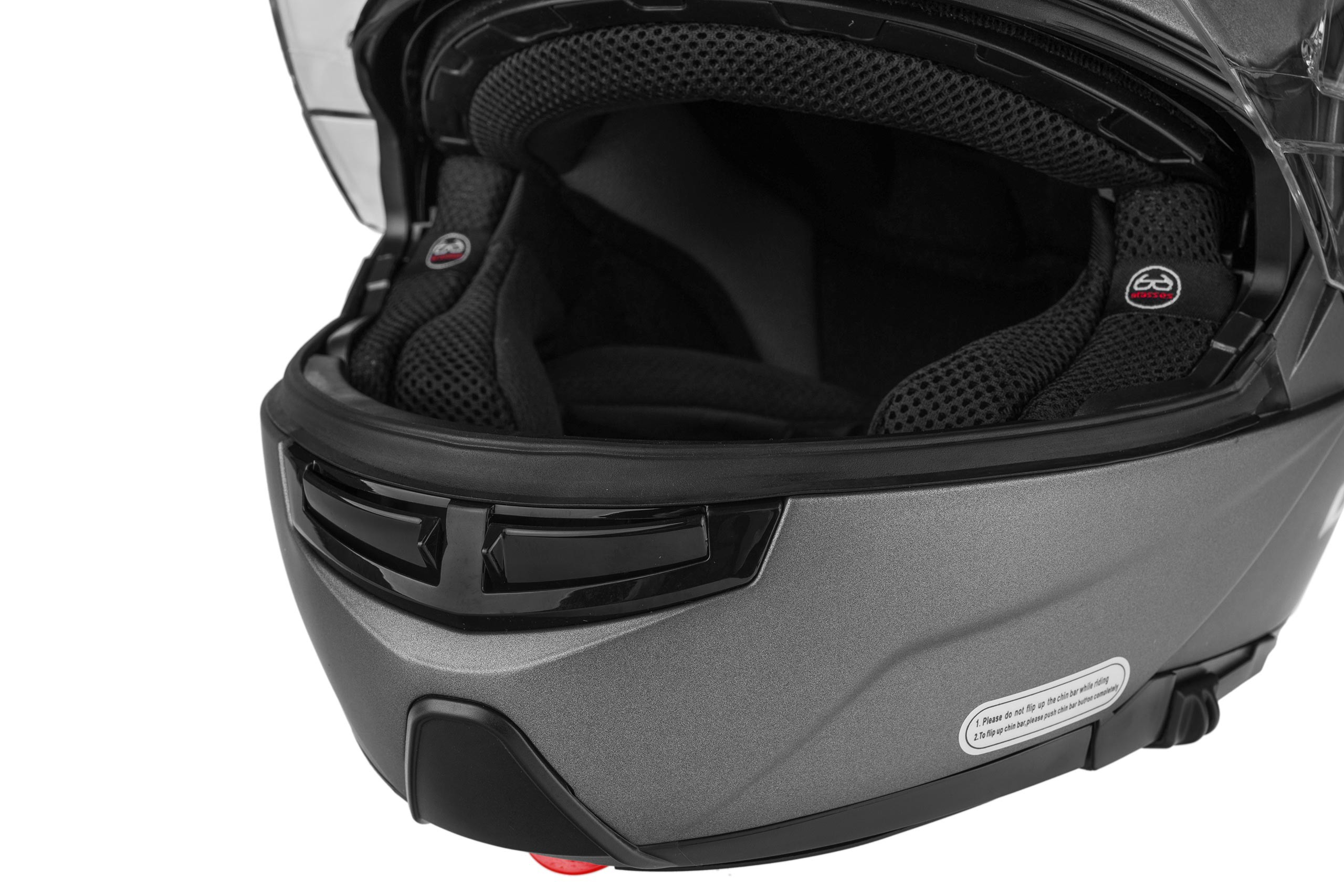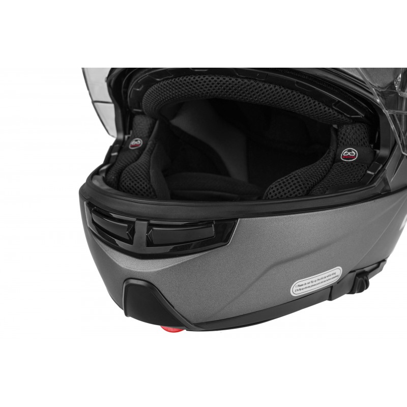 W kasku zastosowano nowoczesny system podnoszenia szczęki jedną ręką. Mechanizm unoszenia to położony w wygodnym miejscu jeden przycisk.