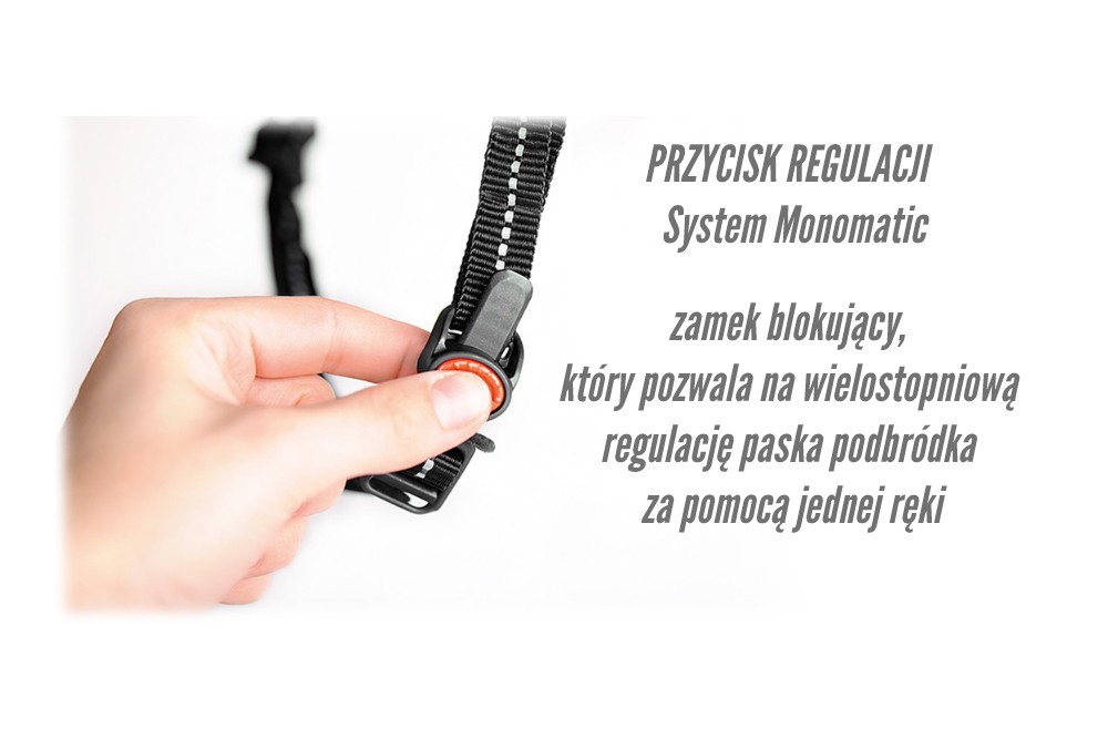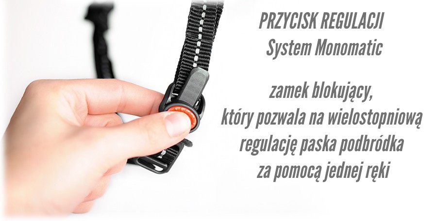 System Monomatic-to zamek blokujący, który pozwala na wielostopniową regulację paska podbródka za pomocą jednej ręki