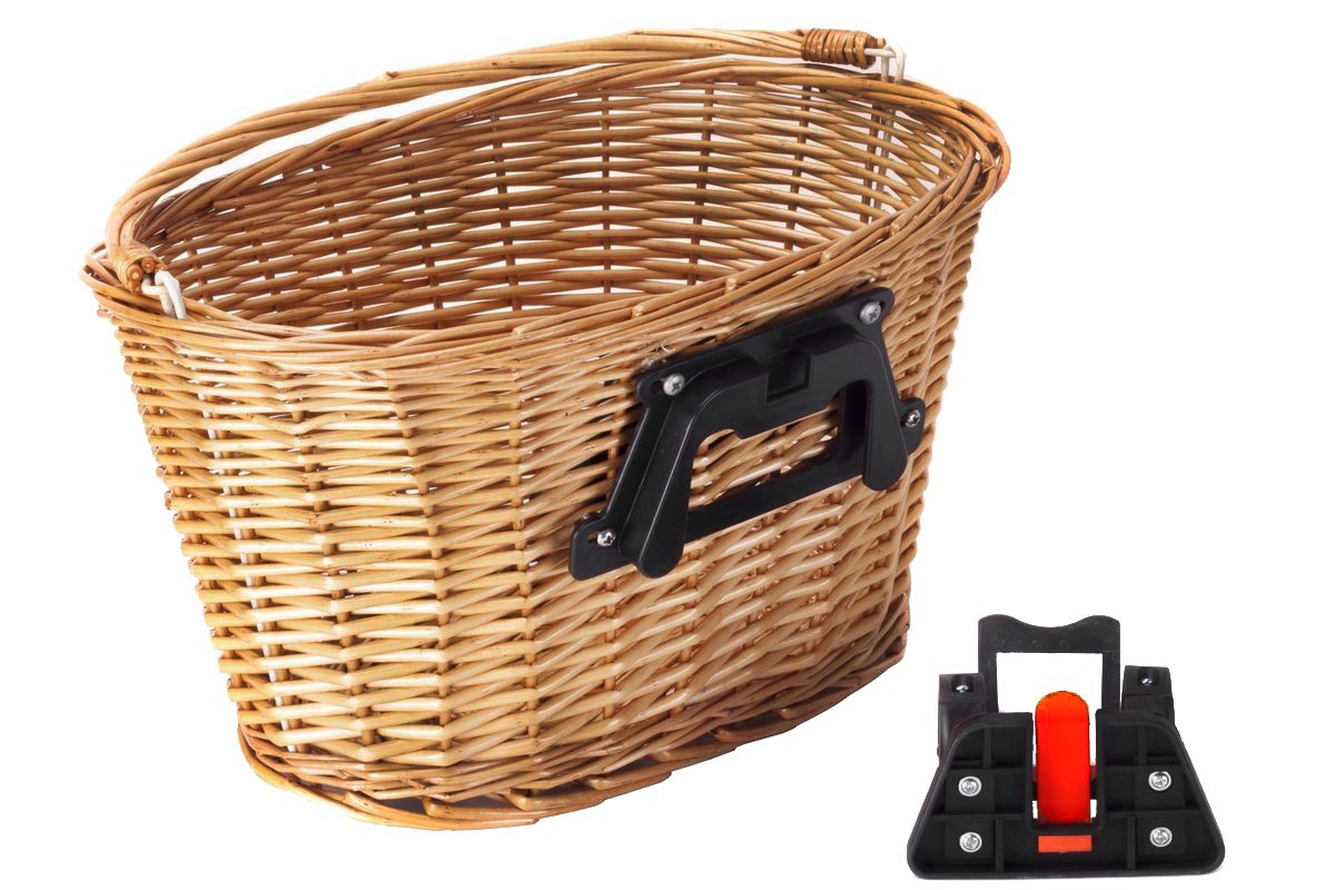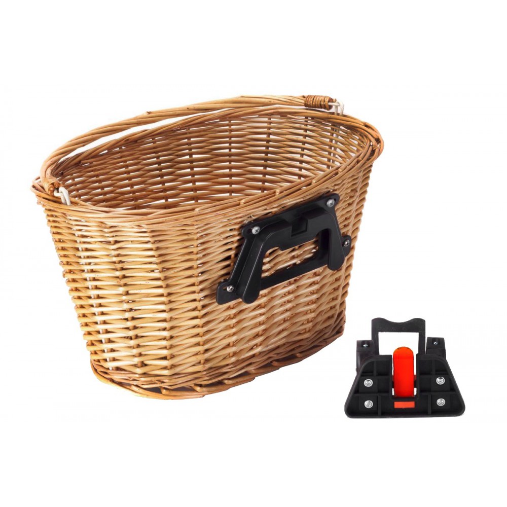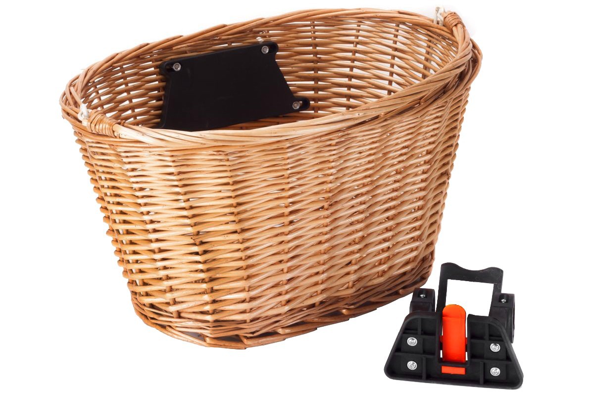 Stylowy koszyk wiklinowy mocowany na kierownicy roweru