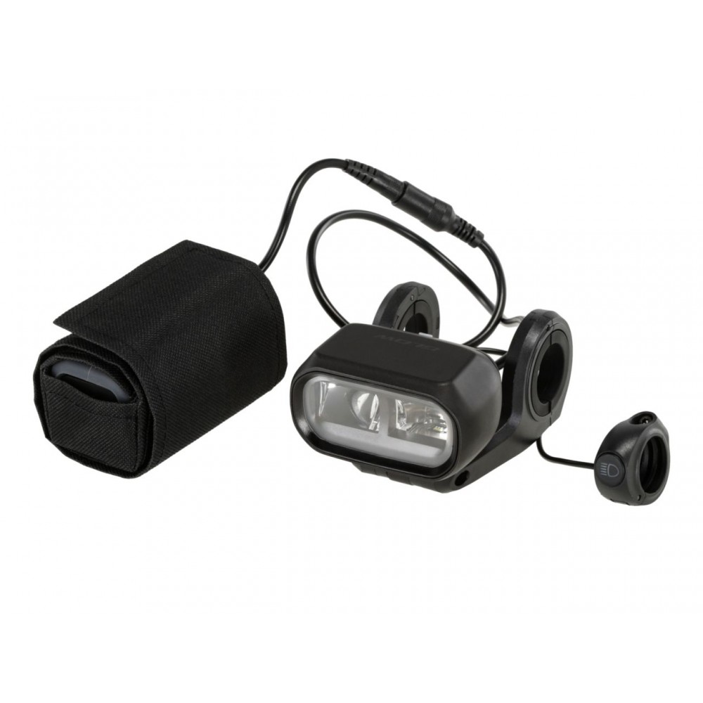 Lampa zasilana jest przez zewnętrzny akumulator o pojemności 7200 mAh, który można łatwo przymocować do ramy za pomocą pasków na rzepy. System HD-Bracket zapewnia szybki i bezpieczny montaż na kierownicy.