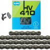 Łańcuch KMC HV410 to solidny i niezawodny łańcuch turystyczny, stworzony z myślą o entuzjastach jazdy na rowerze. Dzięki swojej konstrukcji i materiałom, łańcuch ten zapewnia długotrwałą wydajność oraz stabilność podczas użytkowania.