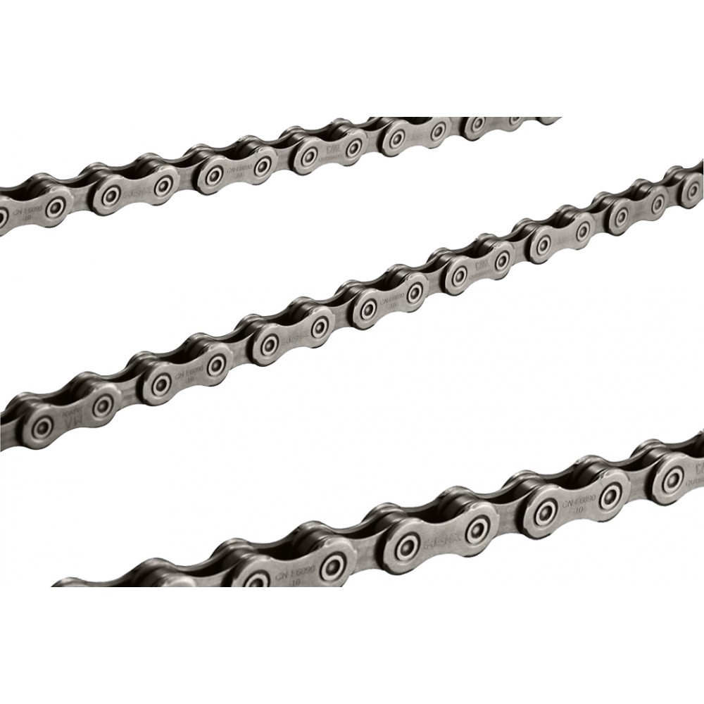 Łańcuch SHIMANO E6090-10 został opracowany do 10-rzędowych układów napędowych SHIMANO STEPS E-BIKE i ma powłokę SIL-TEC na sworzniach oraz płytkach ogniw zwiększającą jego trwałość.