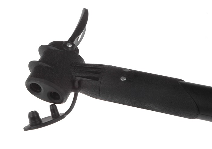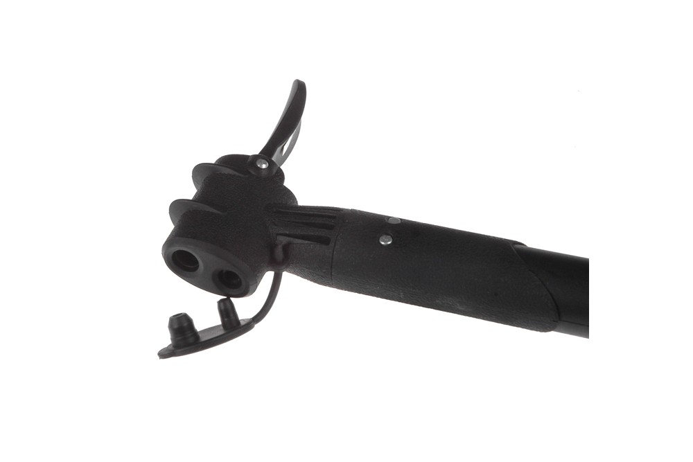Bardzo przydatną funkcją jest możliwość blokowania narzędzia po umieszczeniu jej na ramie rowerowej. Po przekręceniu rękojeści, pompka wydłuża się o 6 cm i blokuje się na ramie rowerowej, co uniemożliwia jej zgubienie w czasie jazdy.