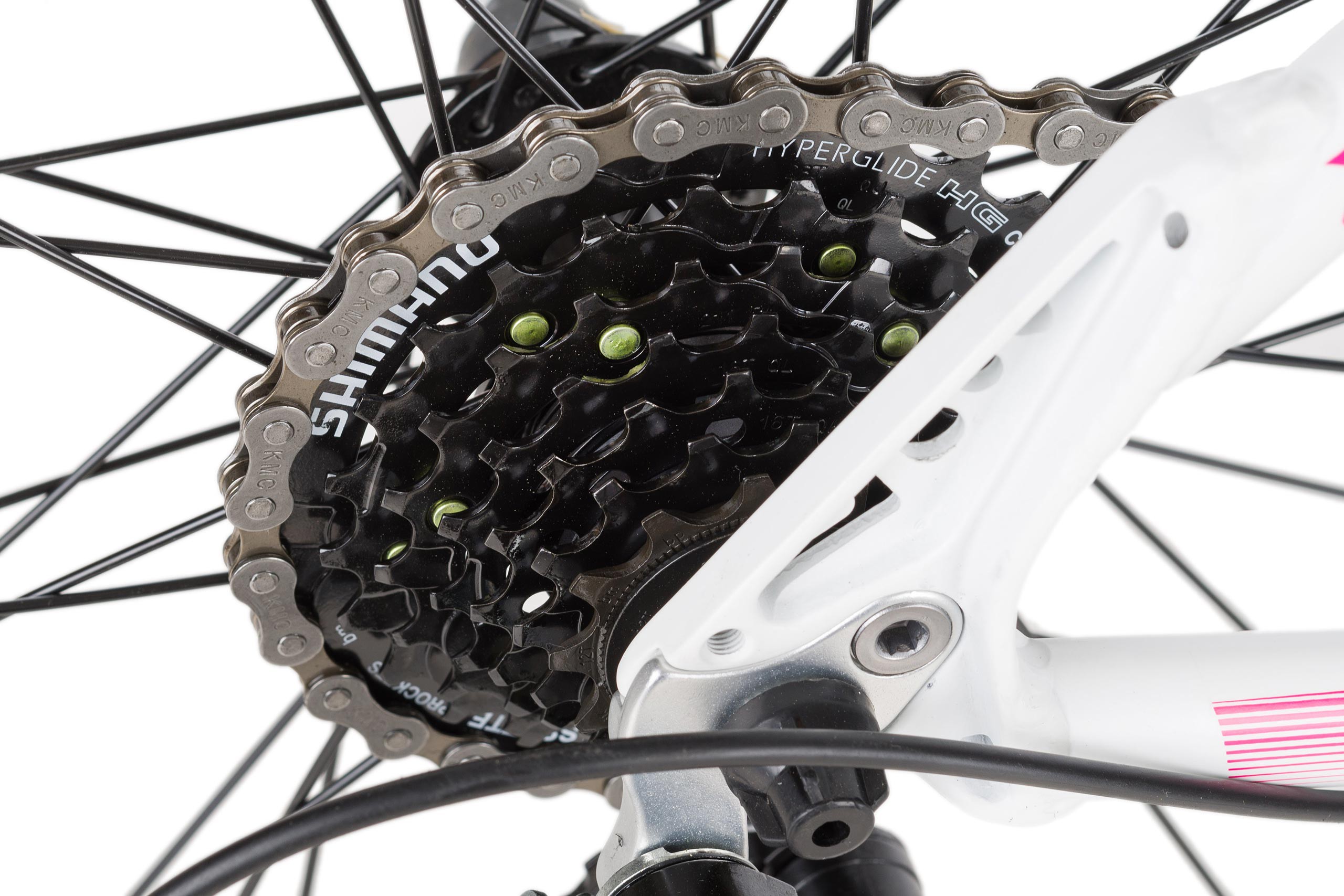 - Posiada tylną przerzutkę typu Shadow, której płaska konstrukcja i lokalizacja w obrębie obrysu ramy, skutecznie chroni ją przed uszkodzeniami w trudnym terenie