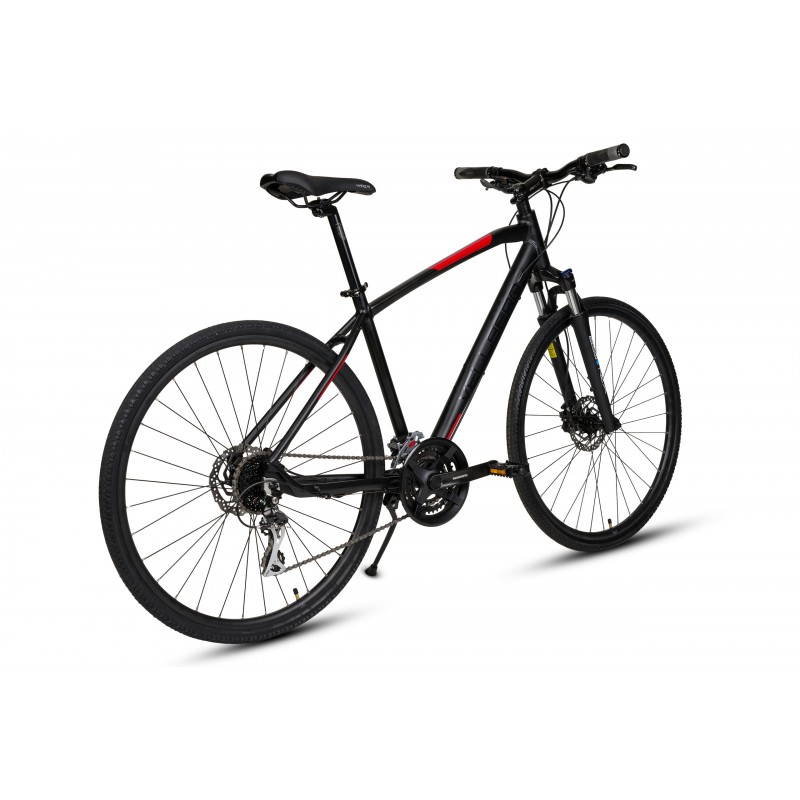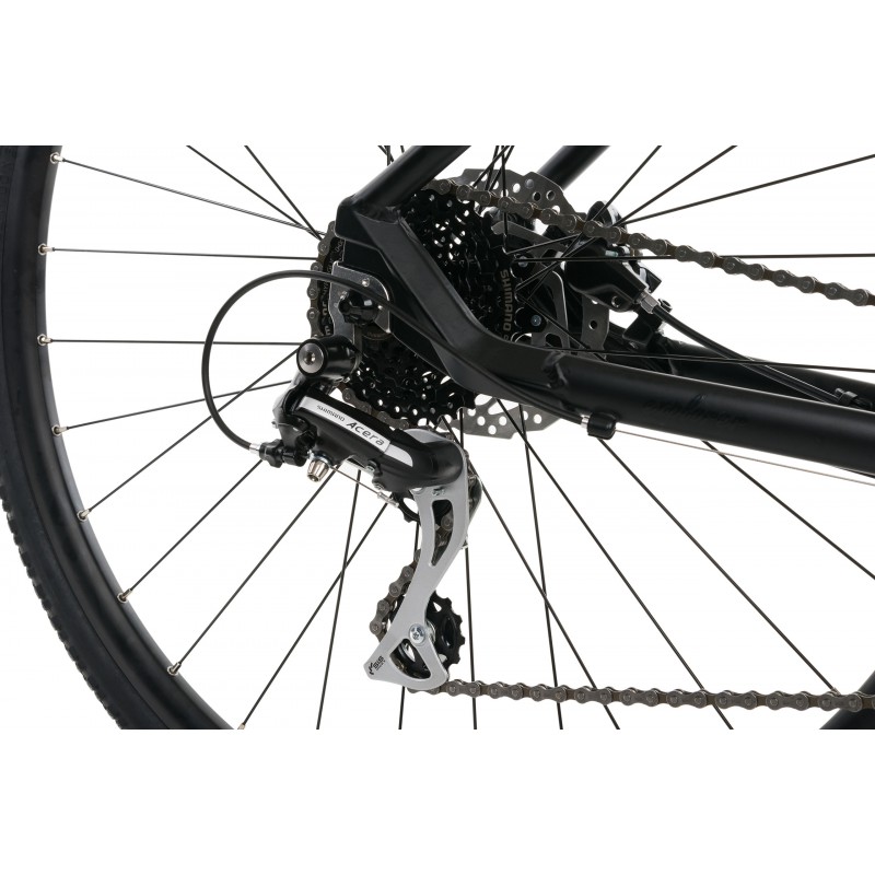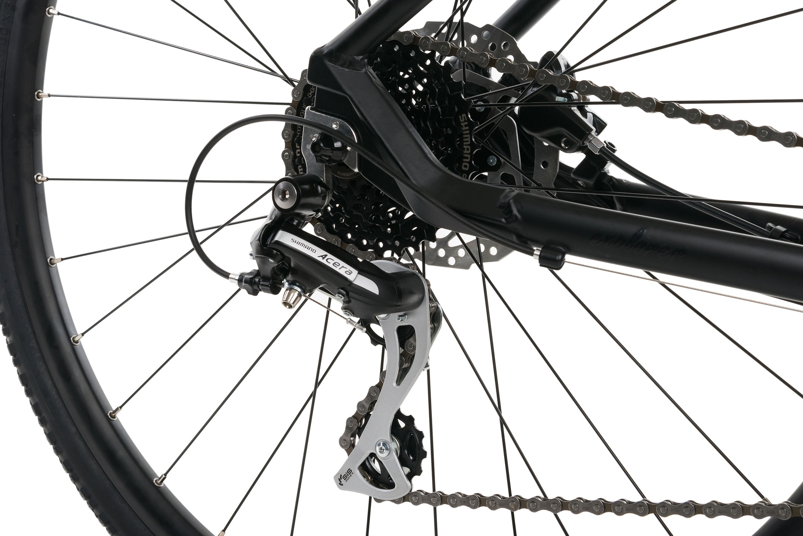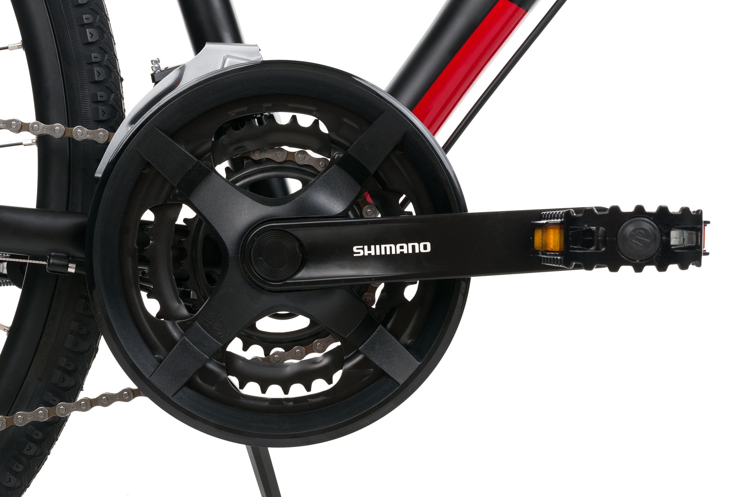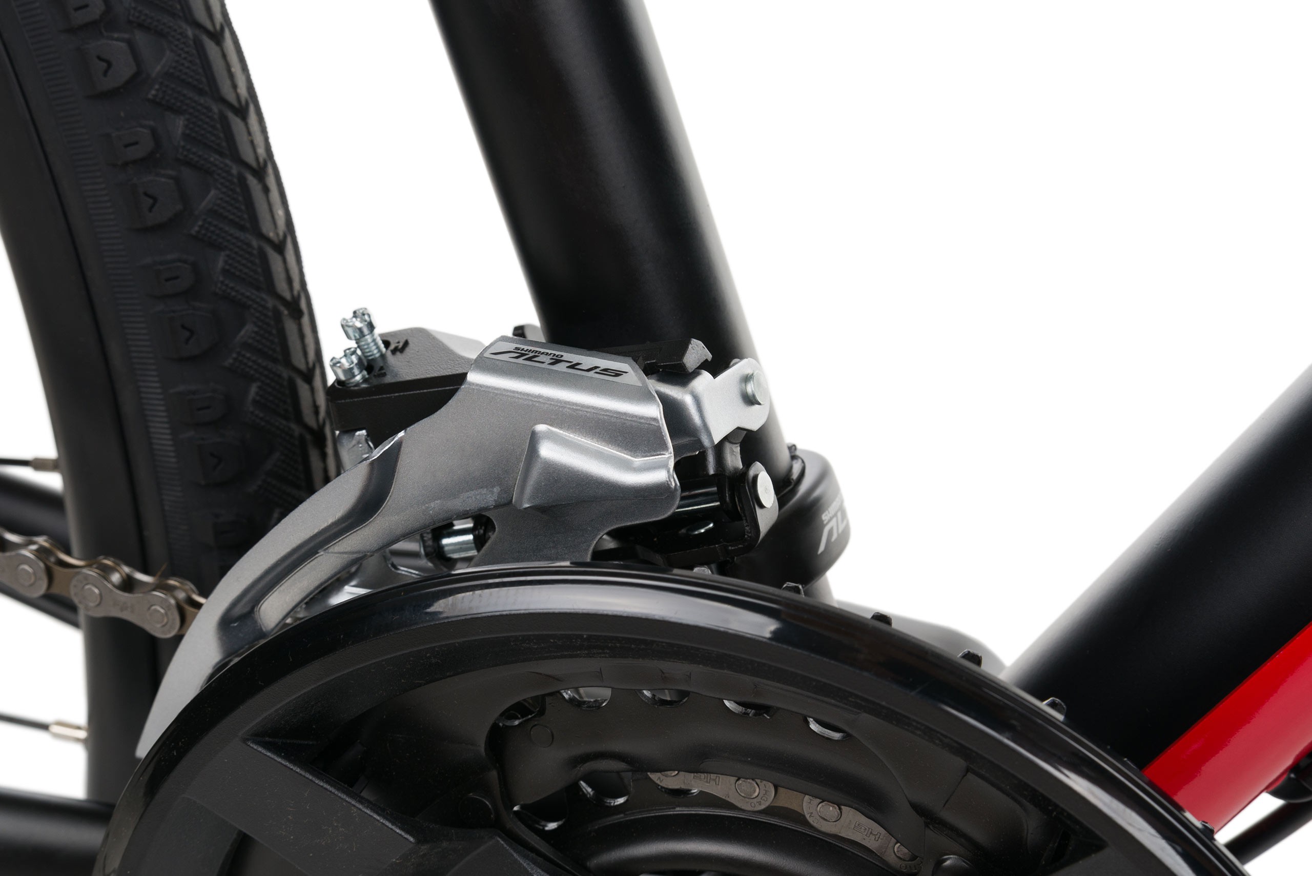 Nasz rower został oparty o osprzęt światowej klasy producentów. Wyposażyliśmy go między innymi w komponenty z grupy Shimano Acera, przerzutka ta jest przeznaczona do komfortowej jazdy i zdecydowanie poprawia jakość i płynność prowadzenia. Rower ma 24 różne przełożenia, idealne do jazdy zarówno w mieście jak i terenie. 8 rzędowy wolnobieg Shimano sprawia, że prowadzenie łańcucha jest praktycznie niewyczuwalne.