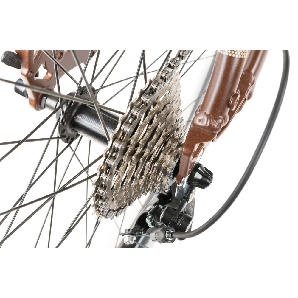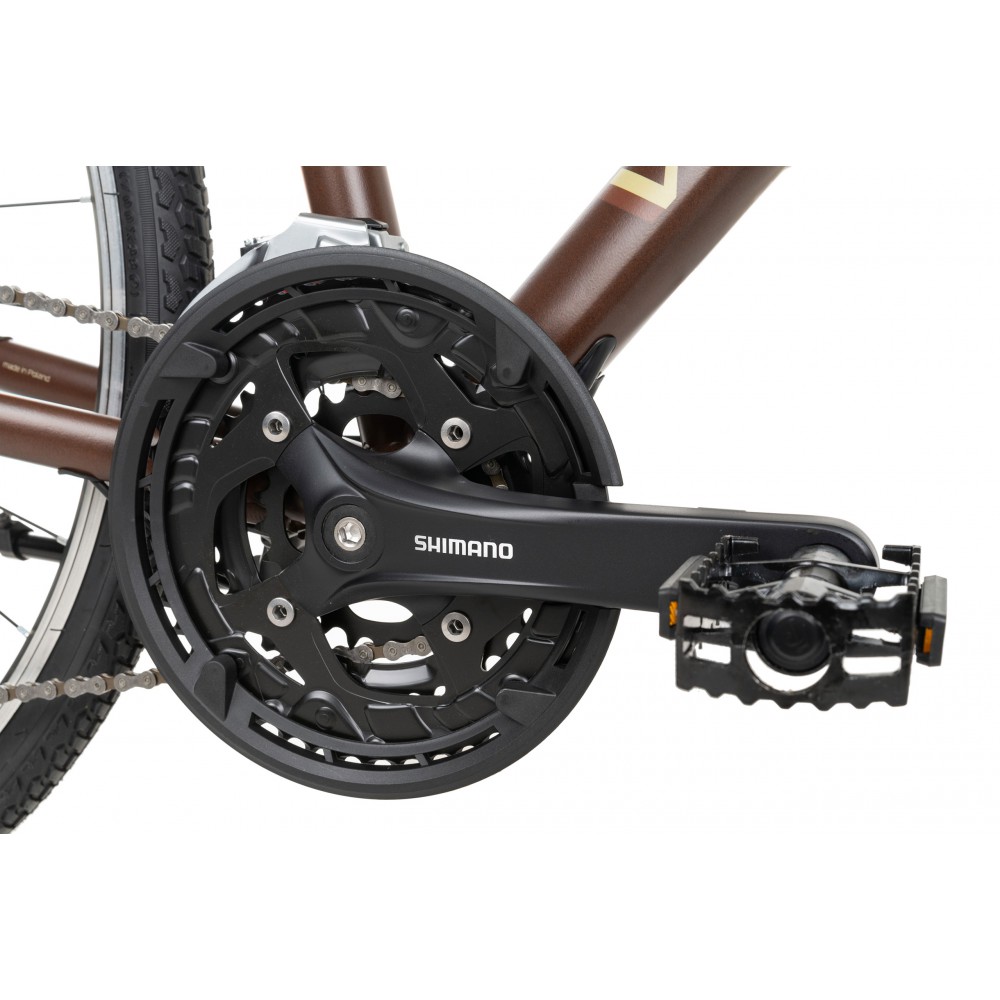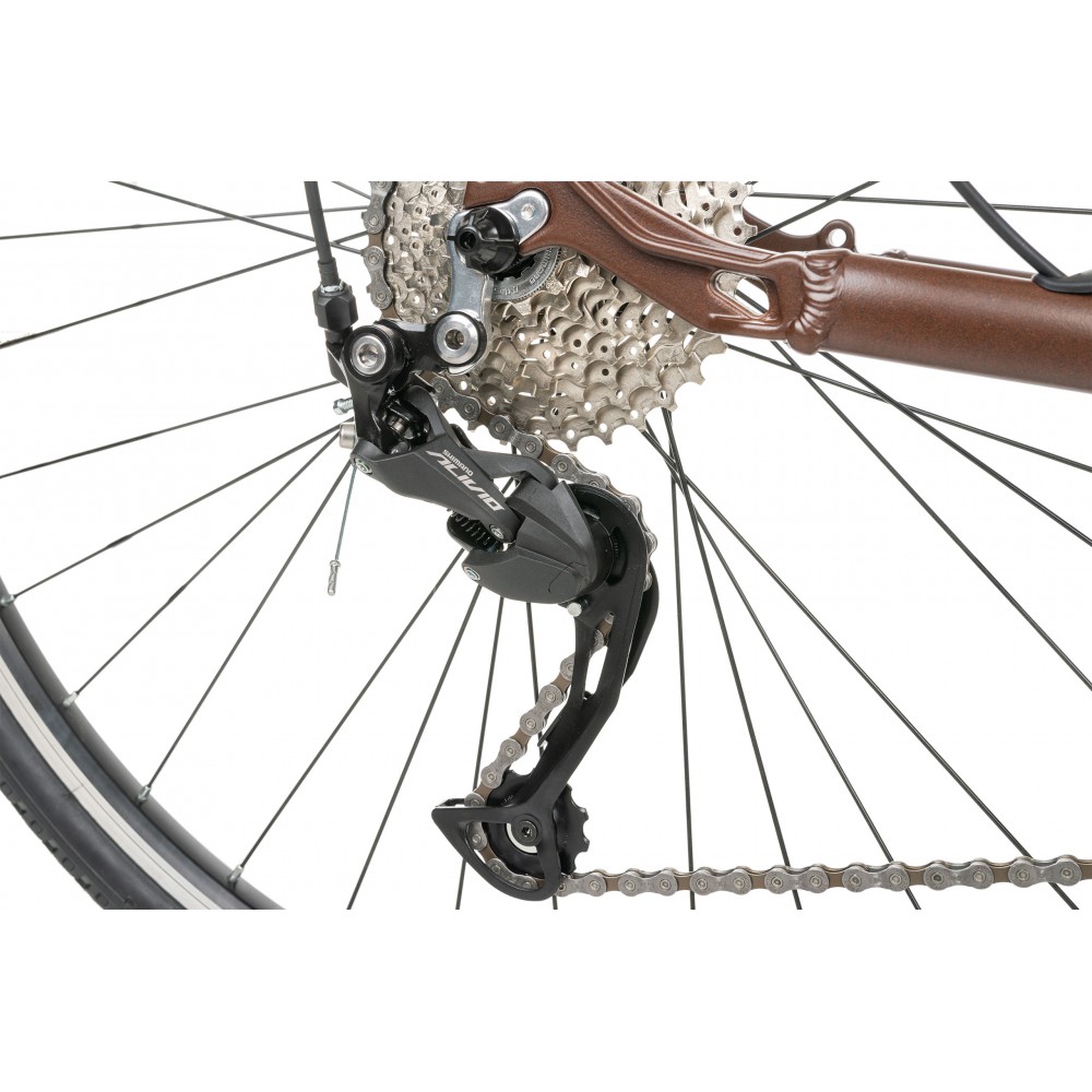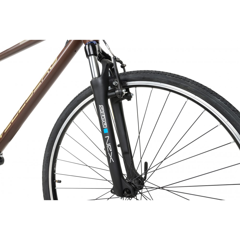 to rower crossowy wyposażony w napęd Alivio 9 rzędowy . Amortyzator przedni Suntour Nex z blokadą skoku na goleniu . Koła 28 z napędem na kasecie 9 rzędowej.
