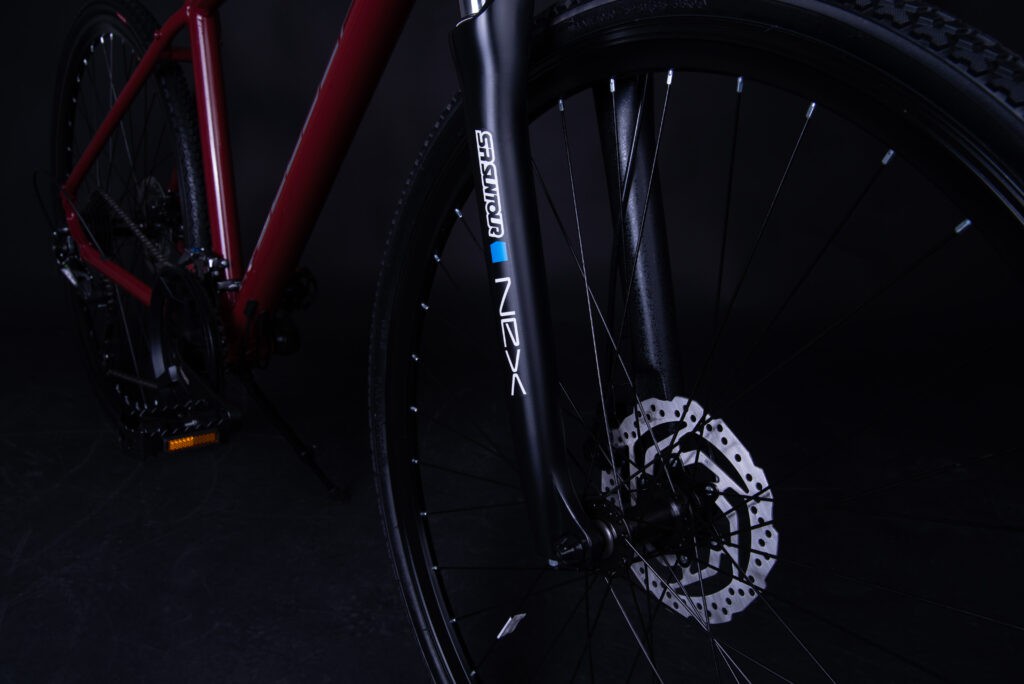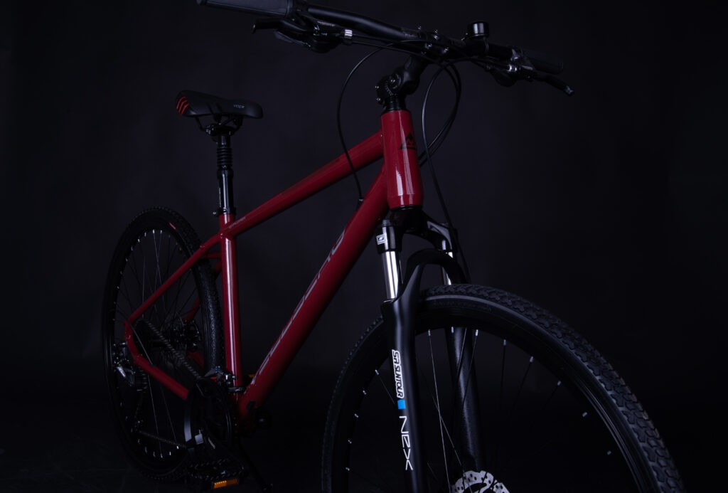 - Stylowy design: Bordowy kolor sprawia, że rower wyróżnia się na tle innych modeli.