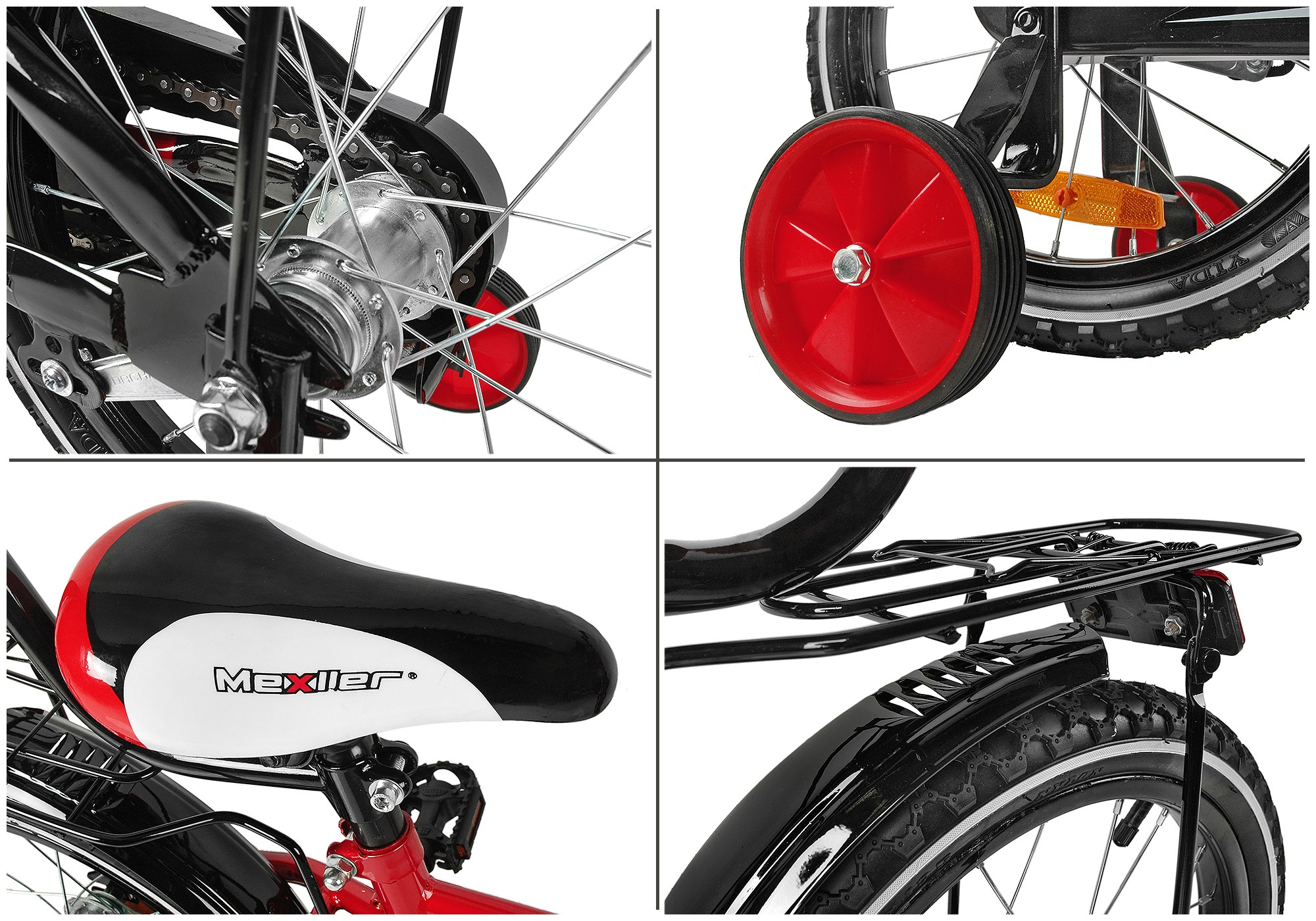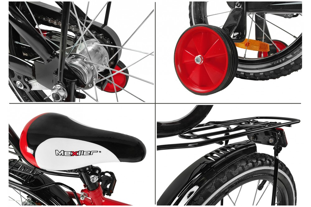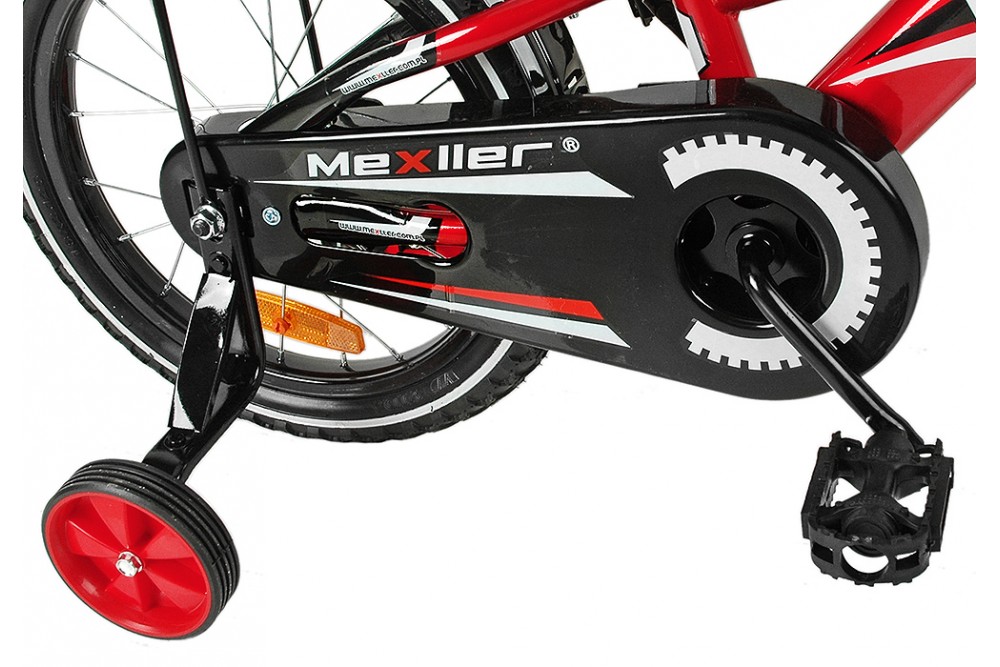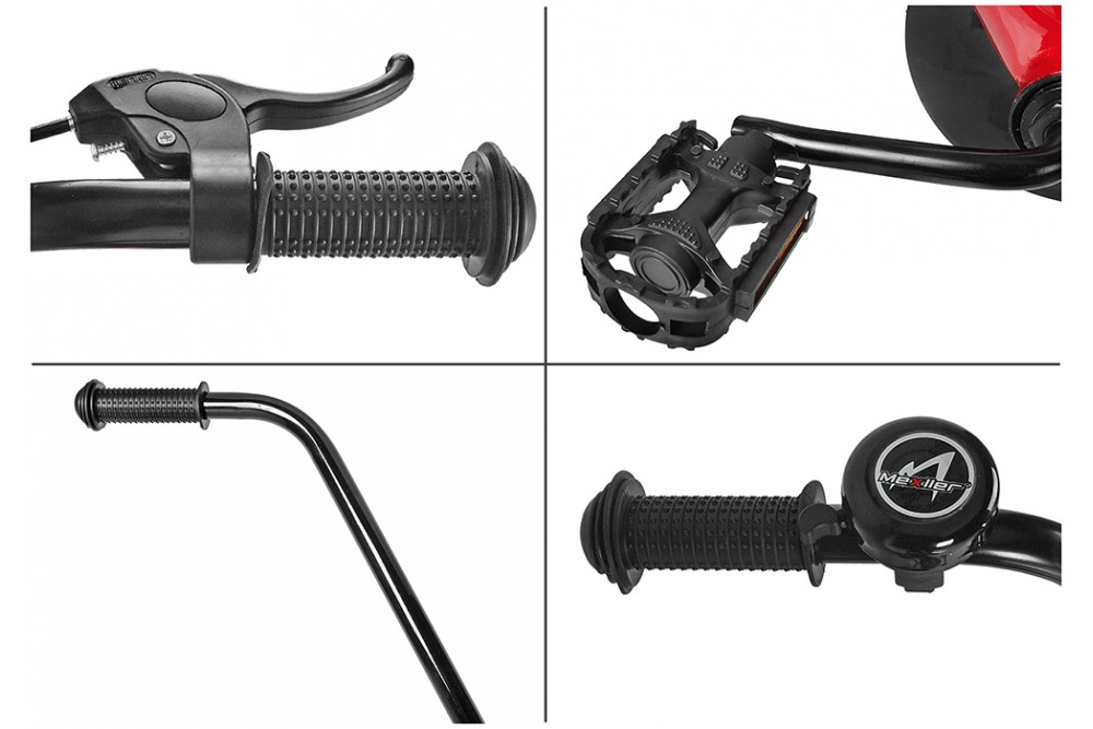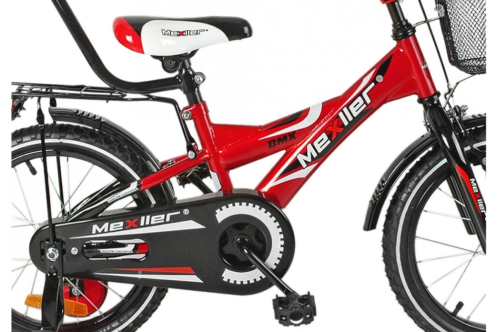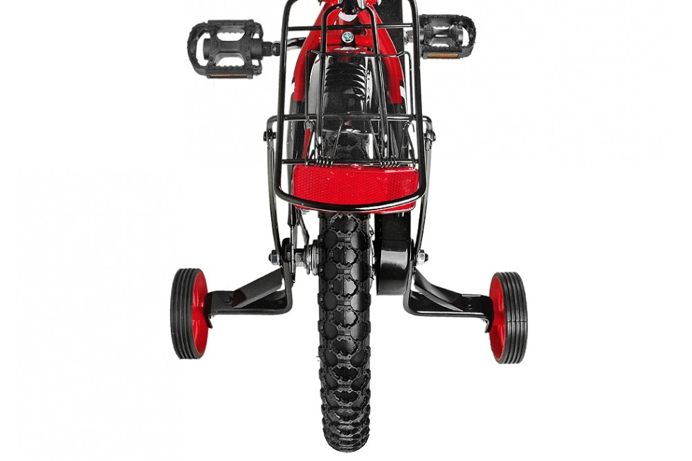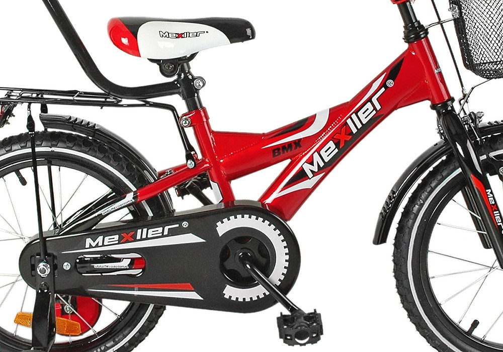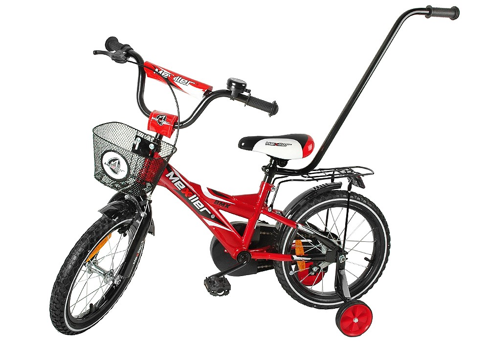 W kompleci: pchacz do nauki jazdy, koszyk, bagażnik, osłona mostka kierwonicy oraz górnej rurki (piankowA), pełna osłona łańcucha, kółka podporowe,pedały,dzownek.