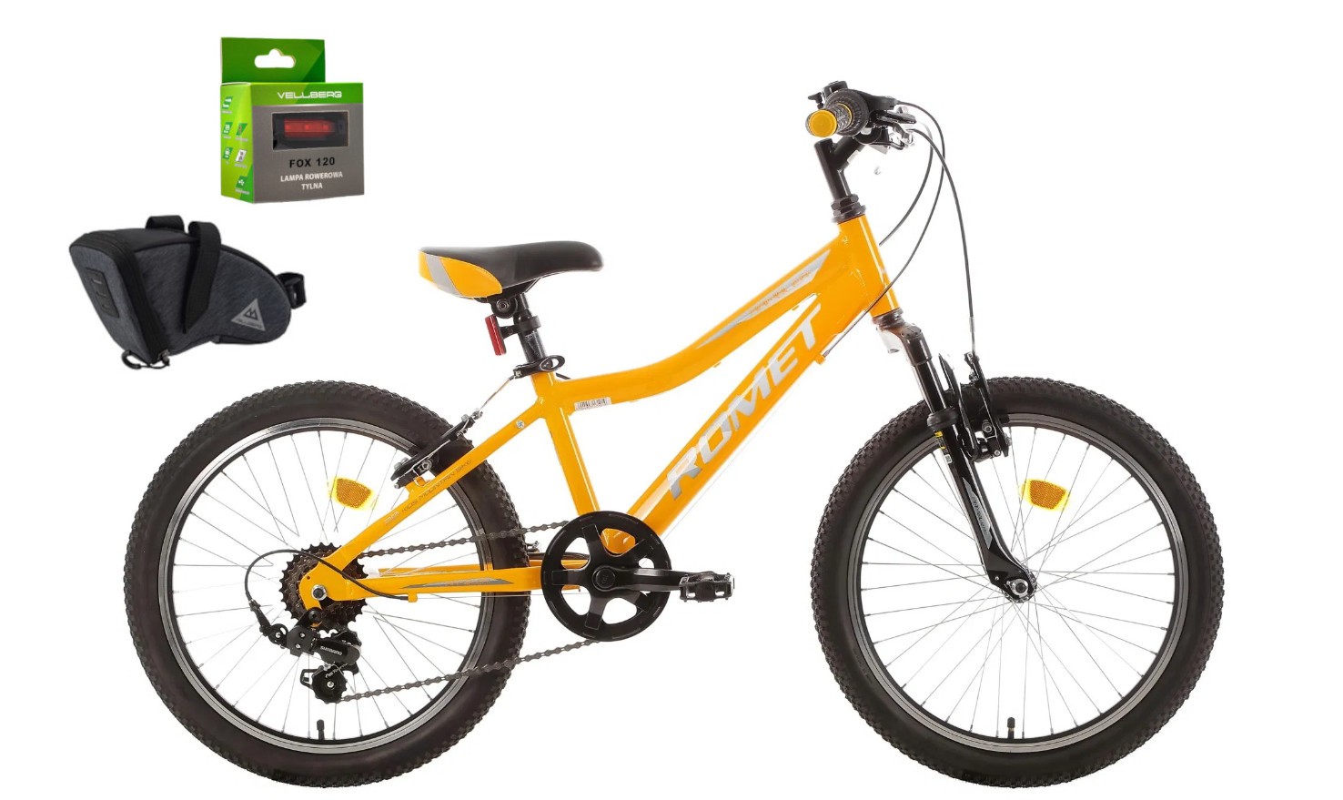 - Siodło: Romet – wygodne i dostosowane do potrzeb młodych rowerzystów.