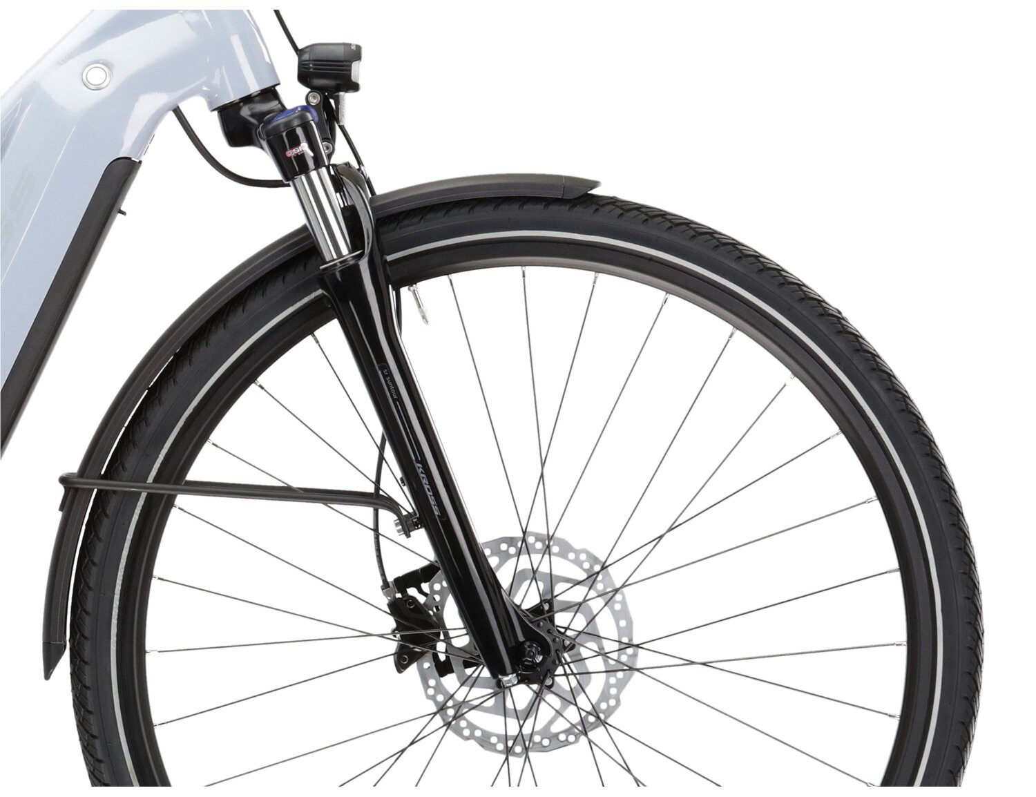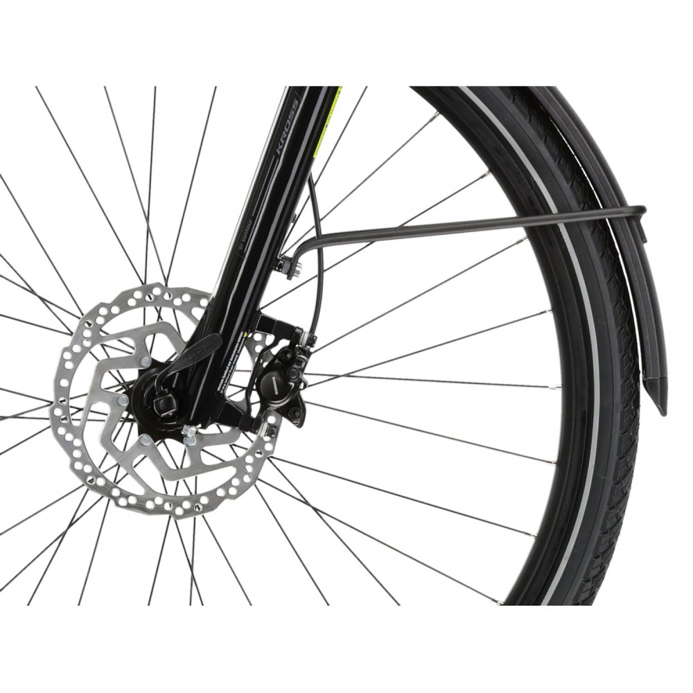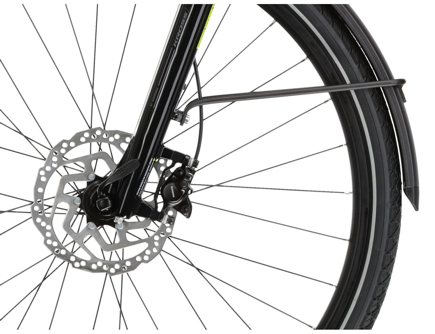 KROSS Trans Hybrid 4.0 został przez nas stworzony z dbałością o wszelkie detale. Dlatego poza wydajnym napędem elektrycznym wyposażyliśmy go w wysokiej jakości hydrauliczne hamulce tarczowe Shimano MT200. Oferują one dużą siłę hamowania, która z pewnością przyda się podczas każdej podróży. Tylna przerzutka Shimano Acera T3000 obsługuje 9 przełożeń, dzięki czemu łatwiejsze jest dobranie odpowiedniego biegu do aktualnego terenu. KROSS Trans Hybrid 4.0 to także wysokiej jakości komponenty, które jeszcze bardziej zwiększają jego użyteczność. Podpórka umożliwi postawienie roweru w każdym miejscu, bez potrzeby szukania ściany, o którą będzie można go oprzeć. Zintegrowane oświetlenie zapewni Ci bezpieczeństwo w trakcie jazdy w niesprzyjających warunkach atmosferycznych oraz po zmroku. Za komfort jazdy odpowiada wygodne siodełko włoskiego producenta Selle Royal, a pokonanie setek kilometrów ułatwiają 28 calowe koła wyposażone w opony o szerokości 45 mm. Gdyby jednak na Twojej drodze stanął krawężnik czy inne przeszkody miejskie lub leśne, to amortyzowany widelec SR Suntour NEX LO zapewni komfort na każdym wyboju.