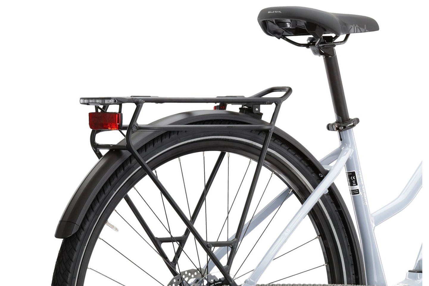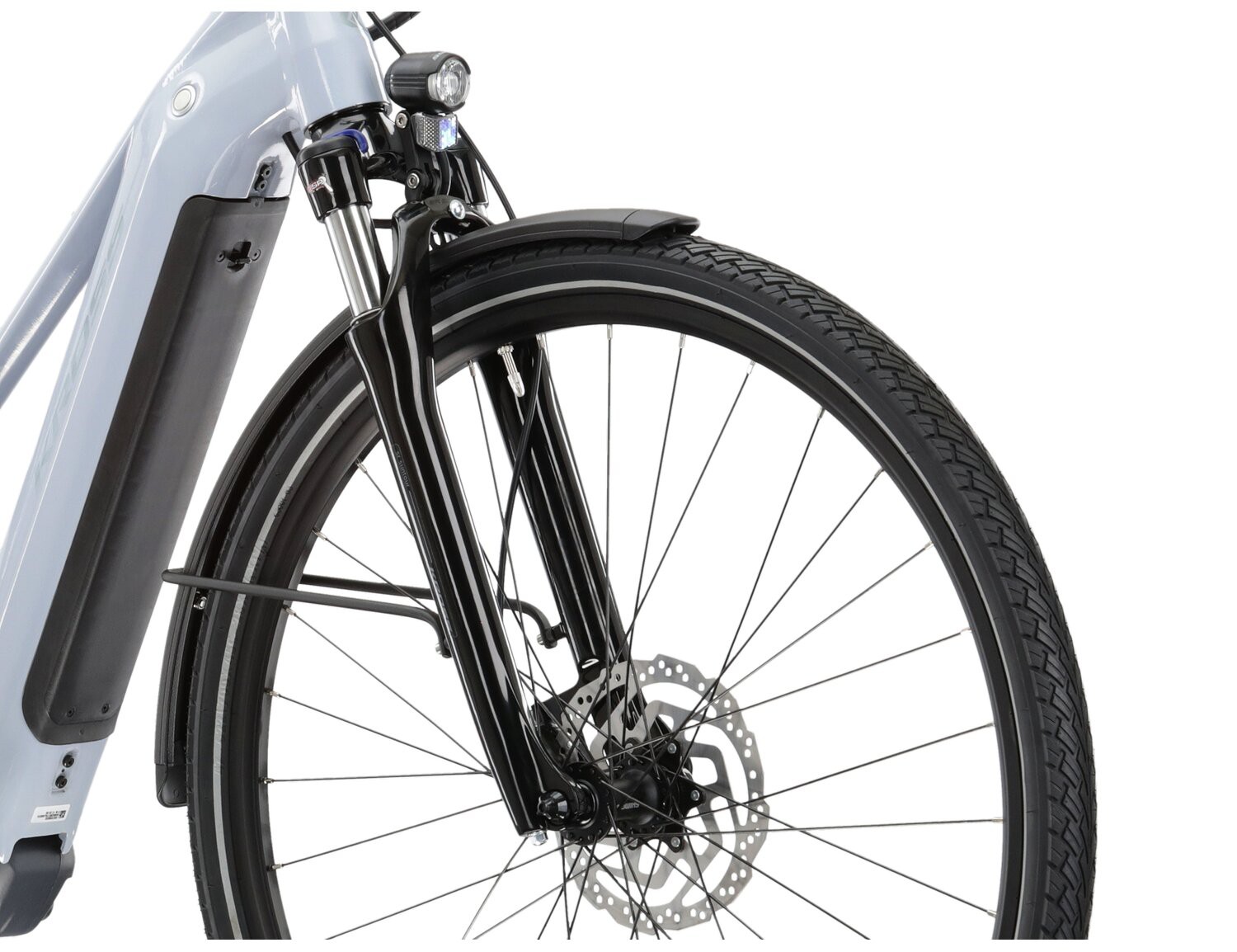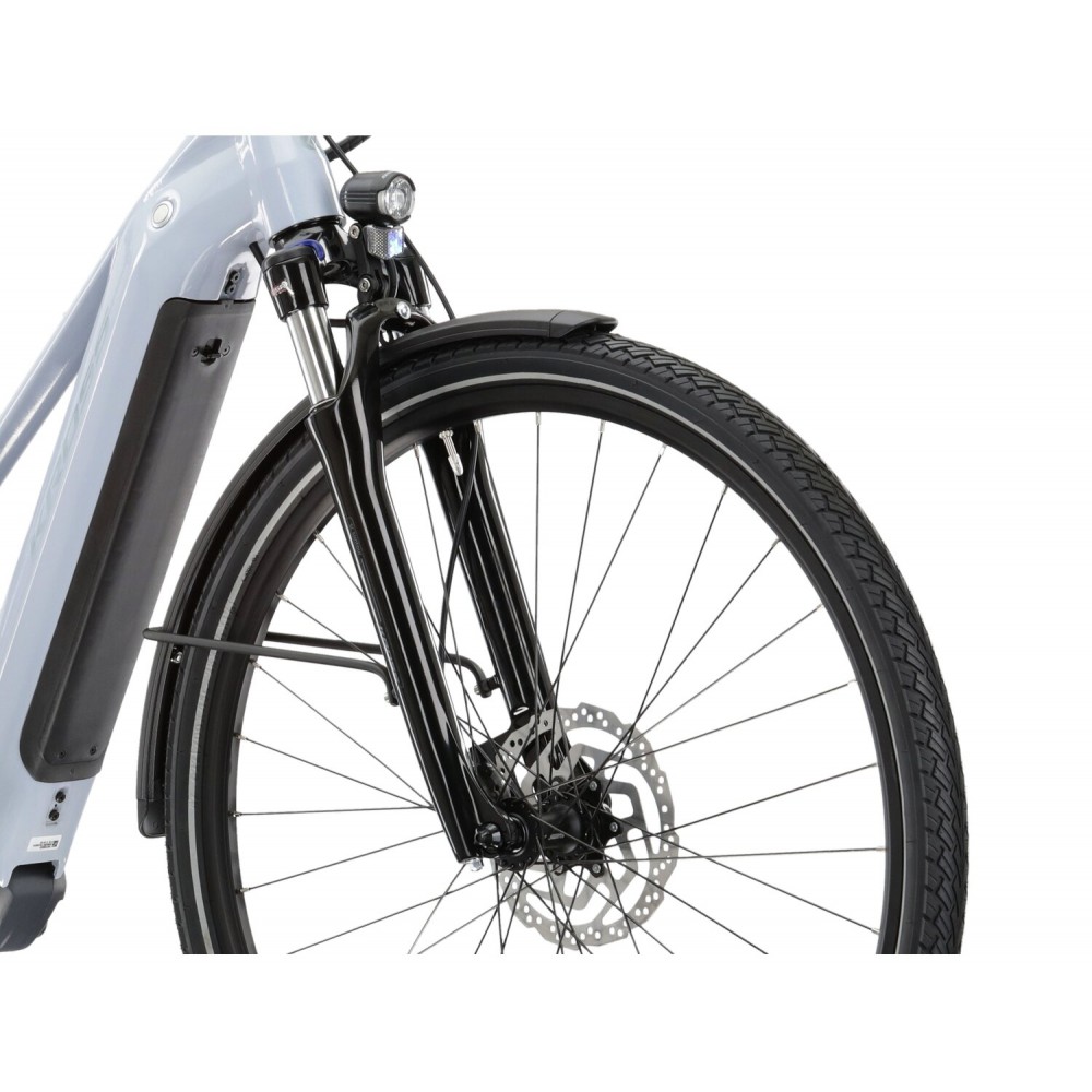 KROSS Trans Hybrid 4.0 został przez nas stworzony z dbałością o wszelkie detale. Dlatego poza wydajnym napędem elektrycznym wyposażyliśmy go w wysokiej jakości hydrauliczne hamulce tarczowe Shimano MT200. Oferują one dużą siłę hamowania, która z pewnością przyda się podczas każdej podróży. Tylna przerzutka Shimano Acera T3000 obsługuje 9 przełożeń, dzięki czemu łatwiejsze jest dobranie odpowiedniego biegu do aktualnego terenu. KROSS Trans Hybrid 4.0 to także wysokiej jakości komponenty, które jeszcze bardziej zwiększają jego użyteczność. Podpórka umożliwi postawienie roweru w każdym miejscu, bez potrzeby szukania ściany, o którą będzie można go oprzeć. Zintegrowane oświetlenie zapewni Ci bezpieczeństwo w trakcie jazdy w niesprzyjających warunkach atmosferycznych oraz po zmroku. Za komfort jazdy odpowiada wygodne siodełko włoskiego producenta Selle Royal, a pokonanie setek kilometrów ułatwiają 28 calowe koła wyposażone w opony o szerokości 45 mm. Gdyby jednak na Twojej drodze stanął krawężnik czy inne przeszkody miejskie lub leśne, to amortyzowany widelec SR Suntour NEX LO zapewni komfort na każdym wyboju.