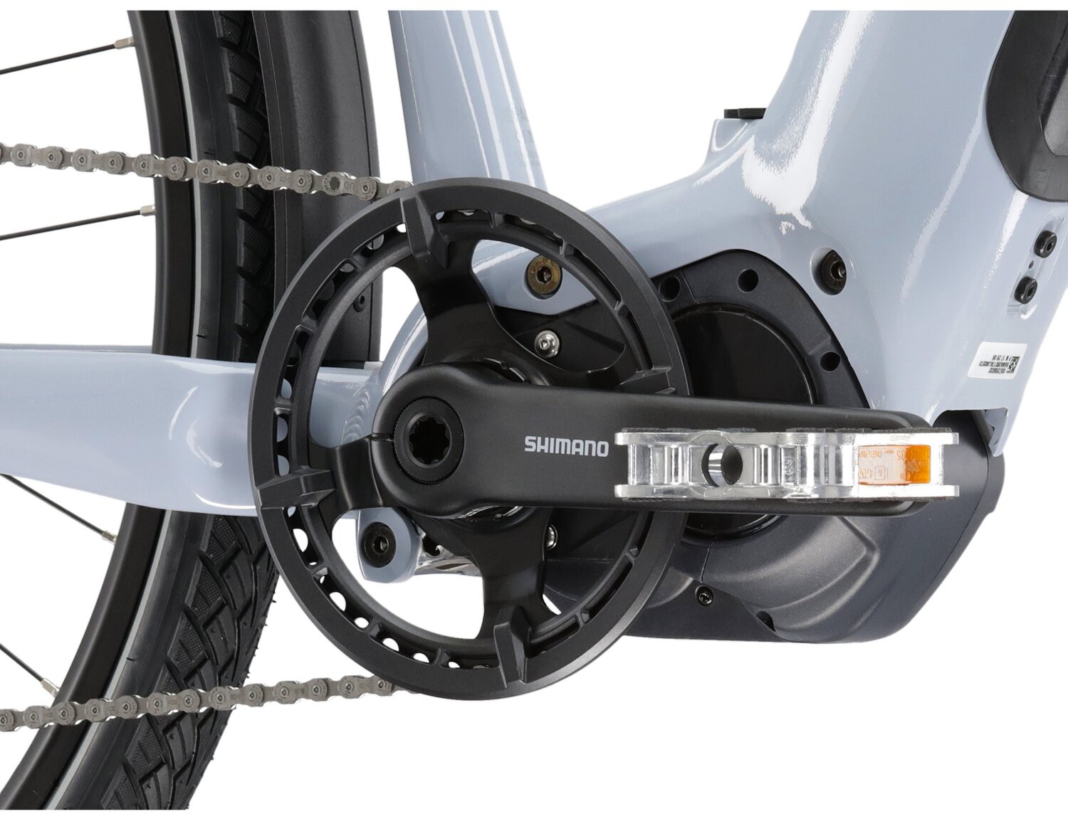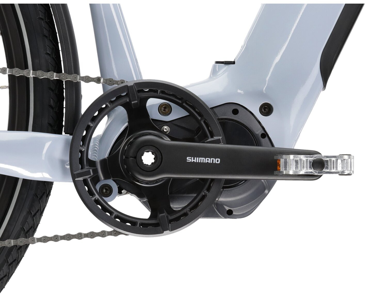 Rower elektryczny KROSS Trans Hybrid 4.0 to doskonały wybór dla każdej osoby poszukującej roweru, który będzie stanowił wsparcie podczas dojazdów do pracy oraz w trakcie długich wycieczek. Dzięki wsparciu elektrycznego silnika Shimano Steps E6110 oferującego 250 Watów pokonanie nawet największych górek nie będzie stanowiło problemu. Niezależnie od tego, czy rower będzie obciążony dodatkowym bagażem. Elektryczny rower trekkingowy KROSS Trans Hybrid 4.0 to także doskonały wybór dla osób chcących uniknąć korków na swojej drodze do pracy. Dręczy Cię obawa o ślady potu na odzieży? Nasz e-bike to rozwiązanie tych problemów. Wspierający Cię podczas pedałowania silnik elektryczny Shimano jest zasilany z baterii o pojemności wynoszącej 504 Wh. Taka pojemność umożliwi Ci pokonanie nawet do 100 kilometrów na jednym ładowaniu. Uzupełnieniem napędu elektrycznego jest wyświetlacz Shimano SC-E6100, na którym wyświetlane są wszystkie niezbędne informacje, takie jak pozostały zasięg baterii czy wybrany tryb wspomagania.