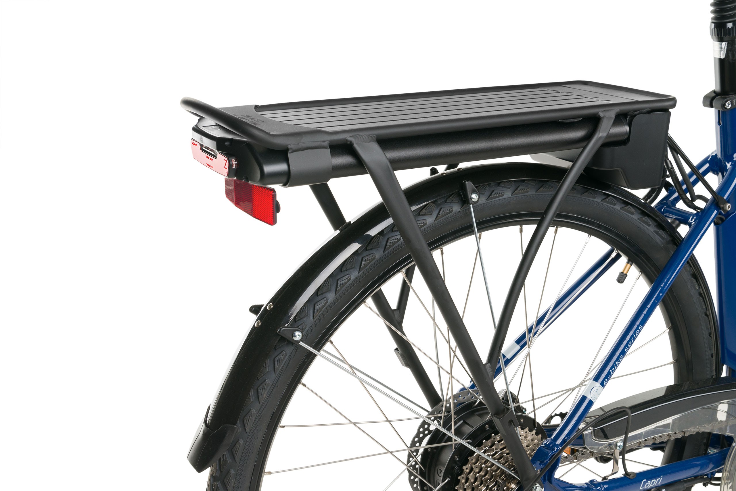 Baterie litowo-jonowe o zasięgu do 60 km. Żywotność baterii to 700-800 cykli ładowania, są to oczywiście dane laboratoryjne które dotyczą rozładowania do 0 i ponownego naładowania. Czas ładowania wynosi około 5 godzin. Bateria o pojemności 440 Wh 36V czyli 12,2 Ah.