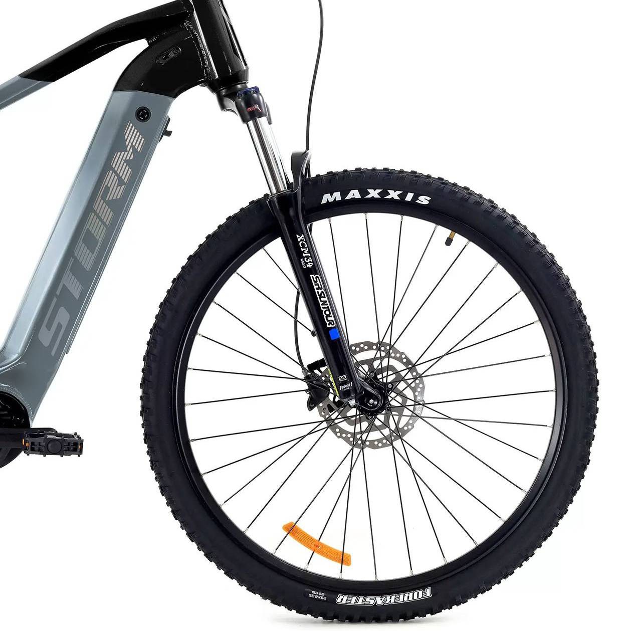 - Koła 29” z aluminiowymi obręczami Storm i oponami Maxxis Forecaster 29x2,35 dla stabilności i przyczepności