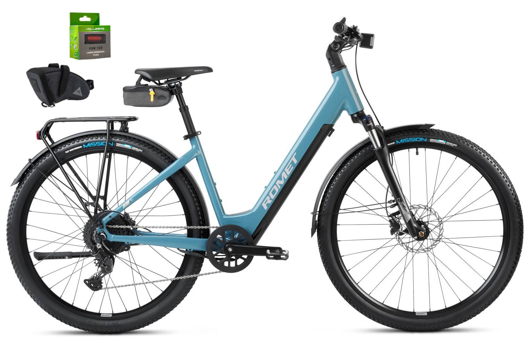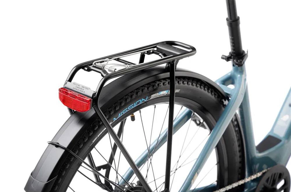 Rower dodatkowo jest wyposażony w błotniki, oświetlenie zintegrowane z jednostką sterującą, bagażnik i stopkę. Na uwagę zasługuje modularny bagażnik AVS do którego bez problemu zamontujemy dedykowane kosze i inne akcesoria.