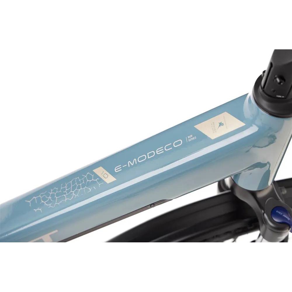 Modele E-Modeco to zupełnie nowa gama modeli miejskich ze wspomaganiem. Rama typu low-step, zintegrowany i regulowany mostek kierownicy z możliwością pełnego wewnętrznego prowadzenia linek, oraz możliwość jazdy na kole 700c i 29 cali to tylko niektóre z niesamowitych rozwiązań tej grupy. Wariant SUV jest wyposażony w koła 29 cali z oponami VeeTire Mission o grubości 2.1 cala. Dzięki temu mamy możliwość jazdy nie tylko w mieście, ale i poza nim.