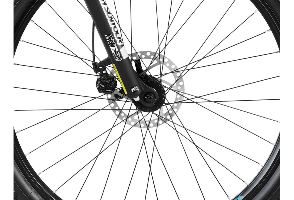 Rambler R7.2 to solidny towarzysz w trudnym terenie. Został wyposażony w przedni amortyzator Suntour XCE o skoku 100 mm, który skutecznie eliminuje wstrząsy, zapewniając wysoki komfort nawet na najbardziej nierównych nawierzchniach. Szeroki zakres przełożeń oraz niezawodne działanie grupy napędowej Shimano Acera, oferującej aż 24 przełożenia, sprawiają, że każda jazda staje się przyjemnością, nawet w wymagających warunkach.