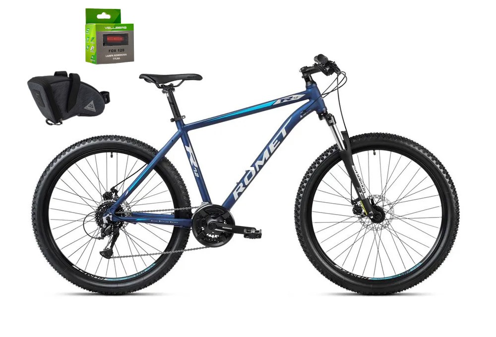 Rower 27,5 ROMET RAMBLER R7.2 granatowy 19" lampka sakwa GRATIS