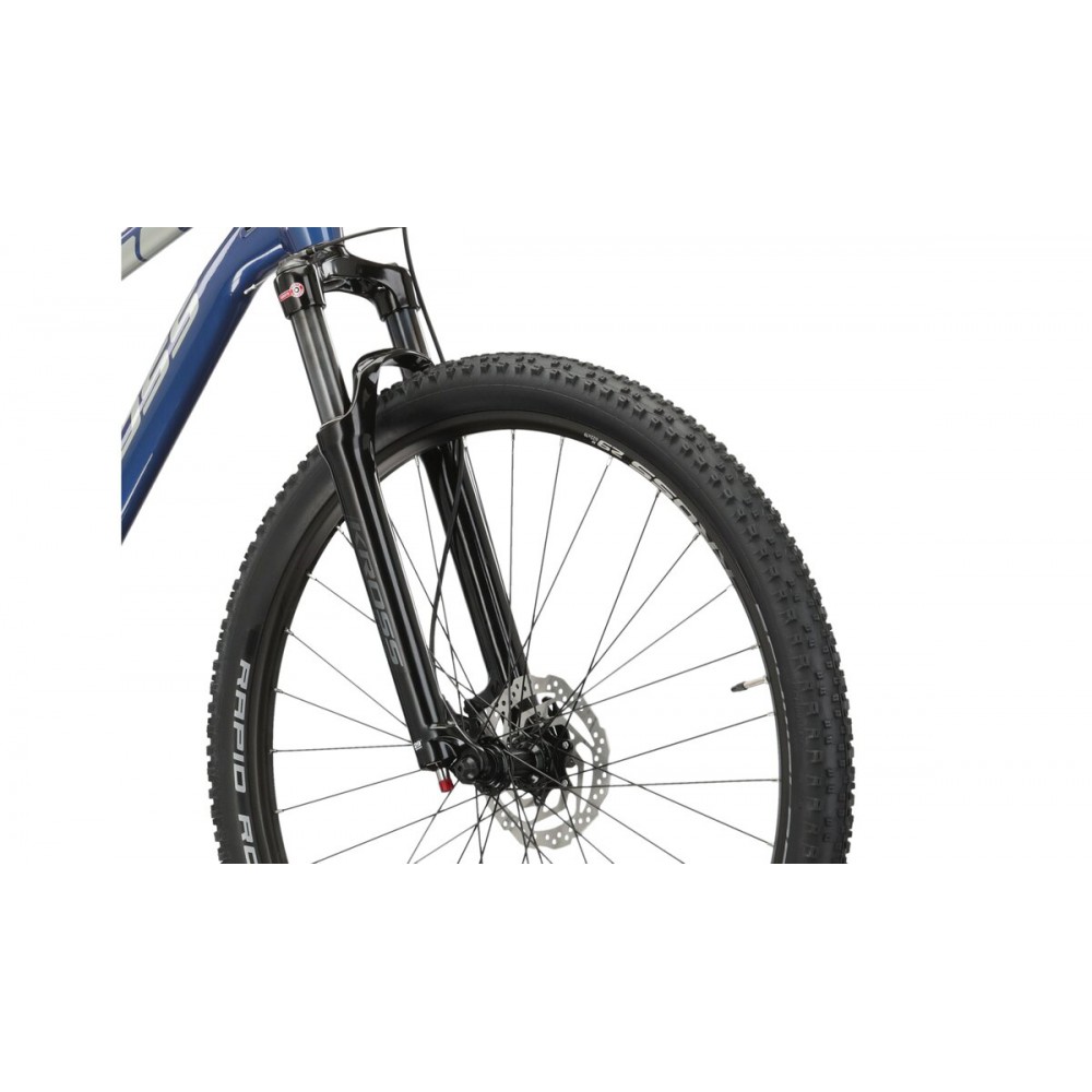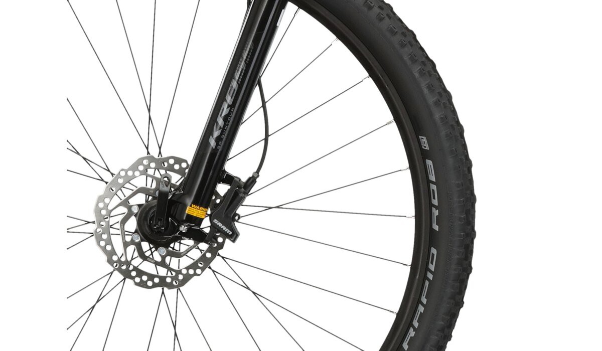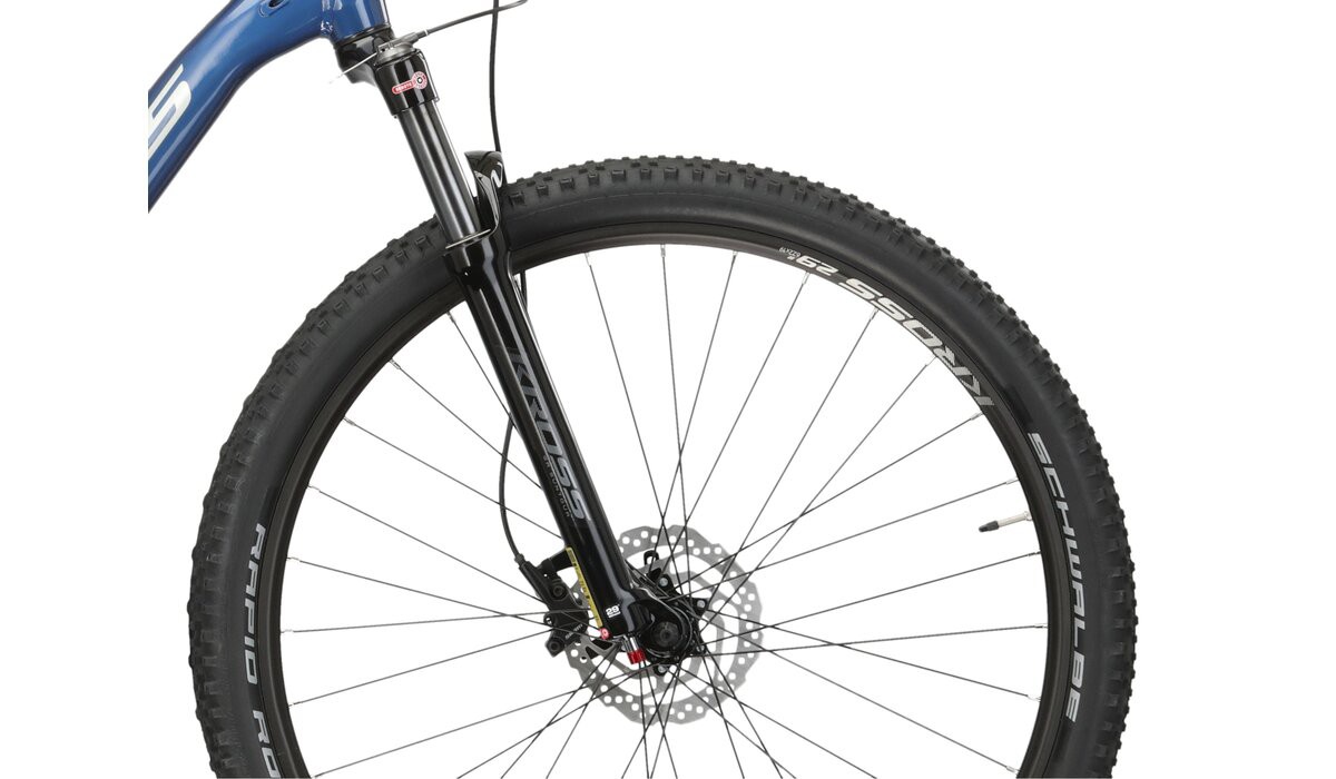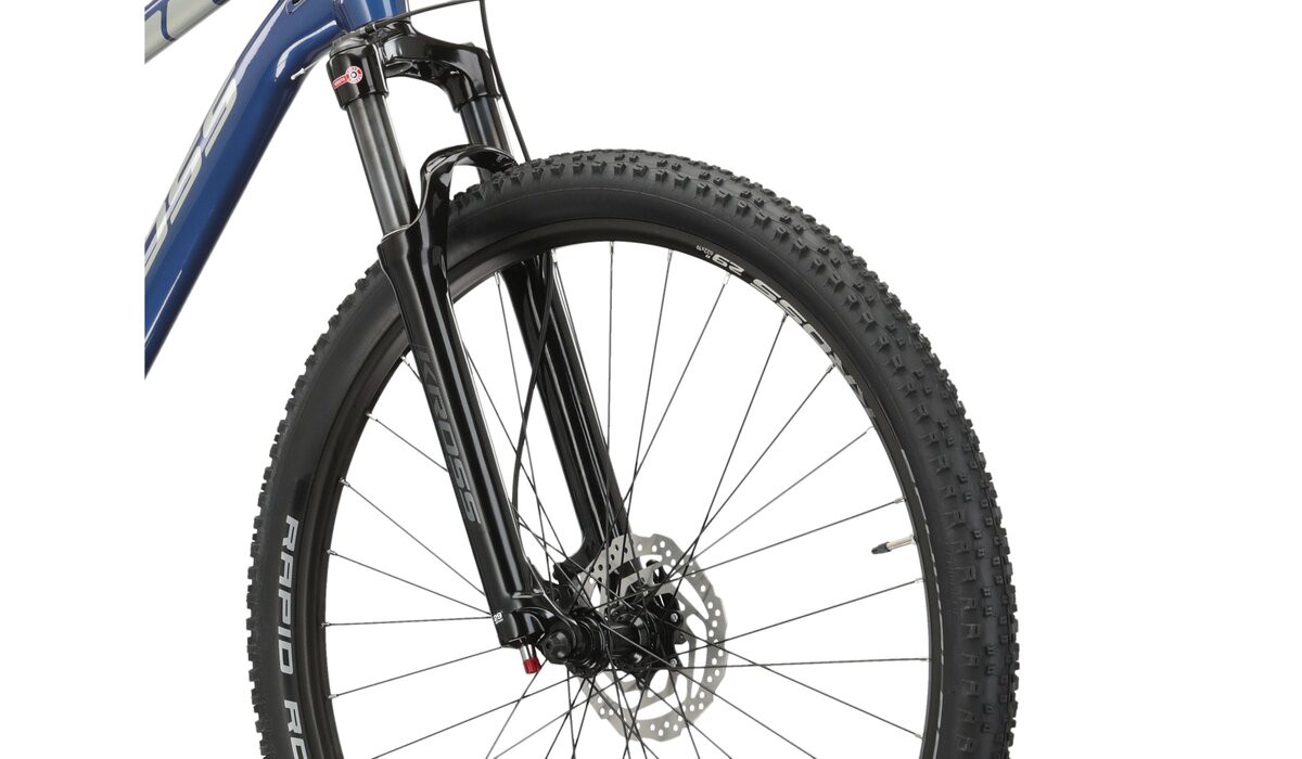 W rowerze zamontowano powietrzny amortyzator Suntour XCR 32 RLR AIR ułatwiający jazdę po nierównościach w terenie oraz pokonywanie miejskich dróg rowerowych. Dodatkowo, na kierownicy znajduje się manetka blokady amortyzatora, umożliwiająca jego usztywnienie. Pomaga to na uzyskanie lepszej efektywności w trakcie pedałowania. Żeby zapewnić wysoką przyczepność na leśnych ścieżkach wyposażono koła w opony SCHWALBE RAPID ROB o szerokości 2,25 cala. Pozostałe komponenty to wysokiej jakości produkty KROSS oraz siodełko renomowanej włoskiej marki Selle Royal.