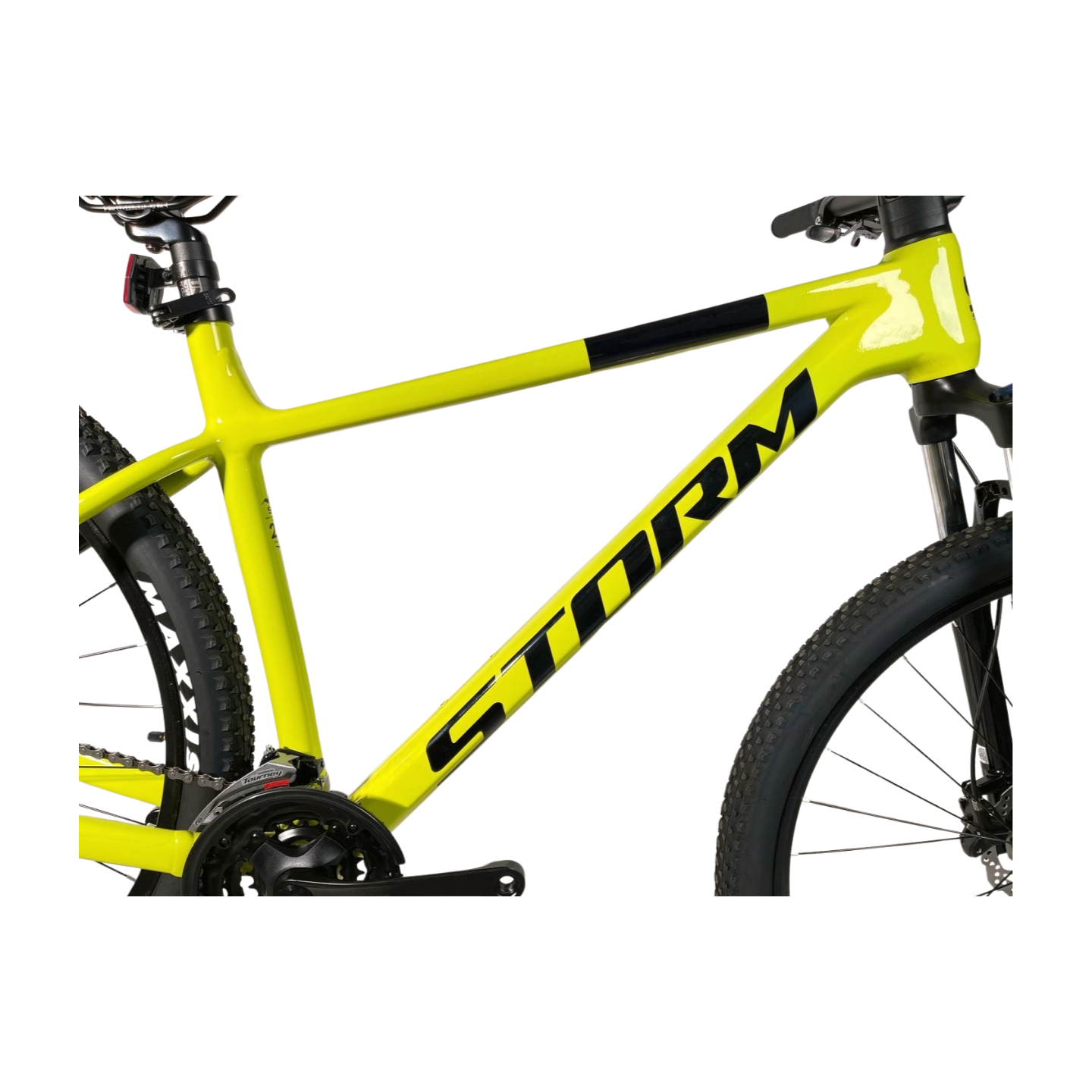 Duże koła 29” z oponami Maxxis Pace gwarantują doskonałą przyczepność i płynność jazdy na każdym terenie. Wzmacniane, aluminiowe obręcze STORM zwiększają trwałość i odporność na obciążenia, co sprawia, że rower sprawdzi się zarówno na górskich szlakach, jak i miejskich ścieżkach.