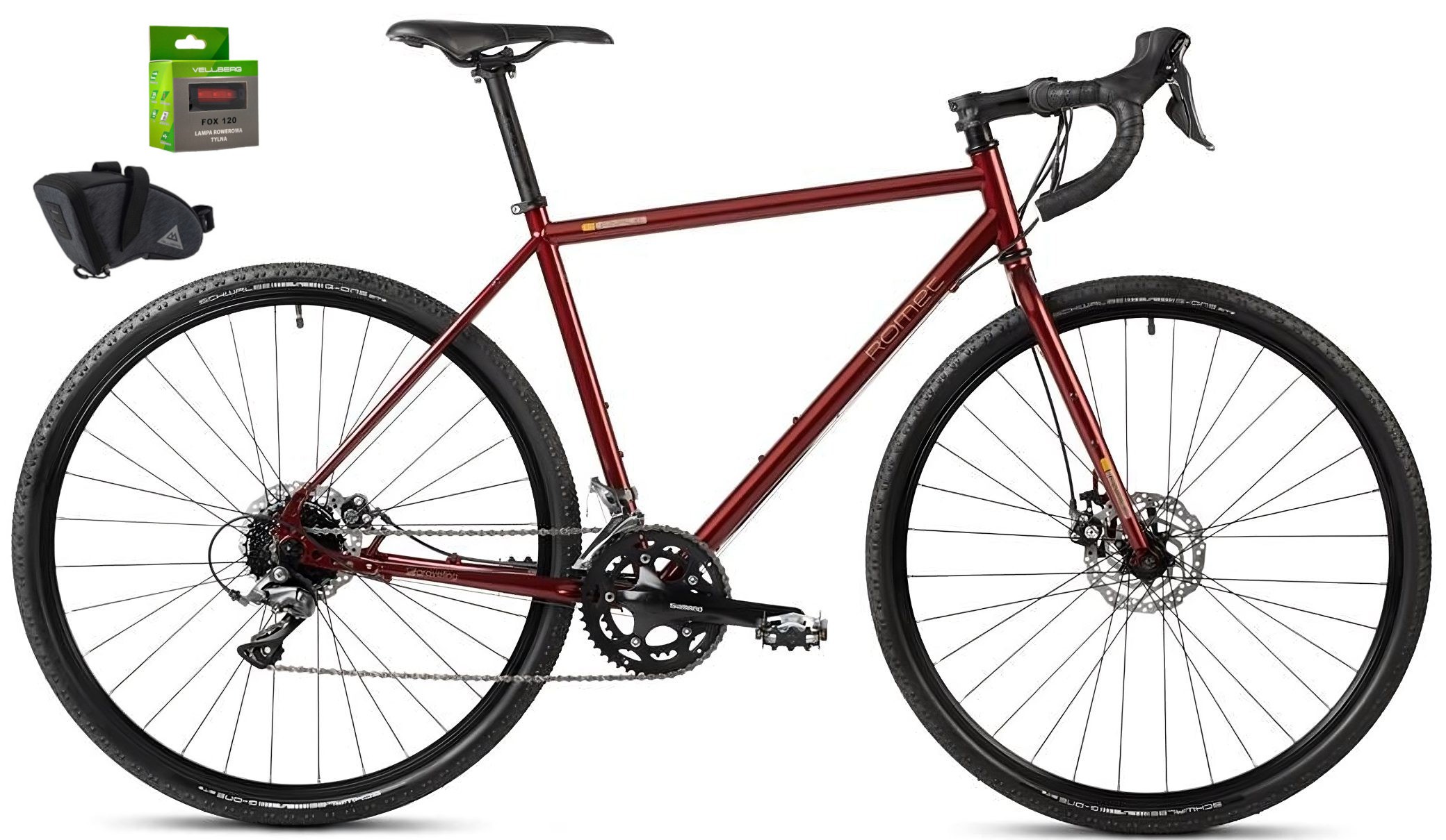 Napęd Shimano Claris o szerokim zakresie przełożeń to odpowiednia kadencja w każdym terenie. Hamulce tarczowe dbają o nasze bezpieczeństwo na każdym kilometrze wyprawy. Opony Schwalbe G-One o grubości 38c to maksimum przyczepności w każdych warunkach pogodowych. Wszystko to uzupełnia wygodne siodełko Selle Italia X-Base.