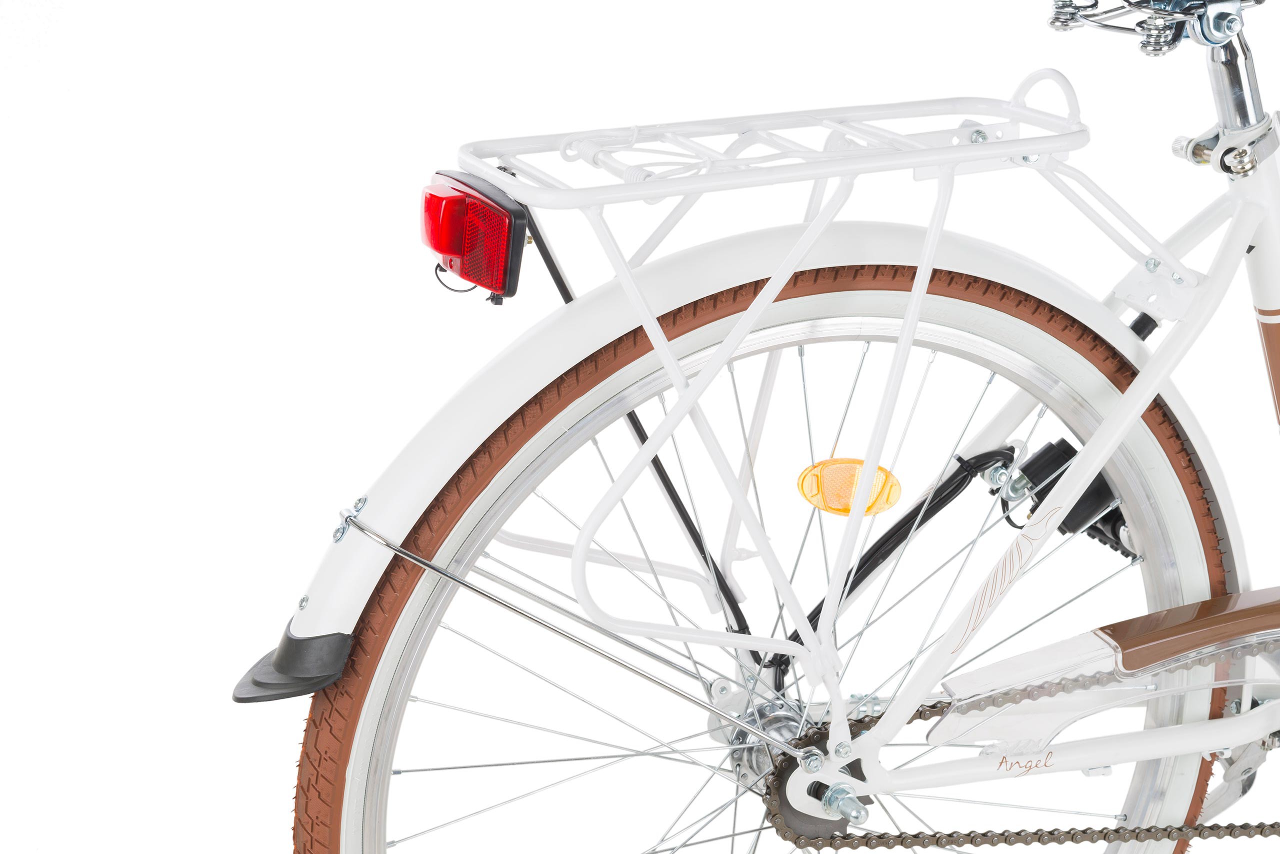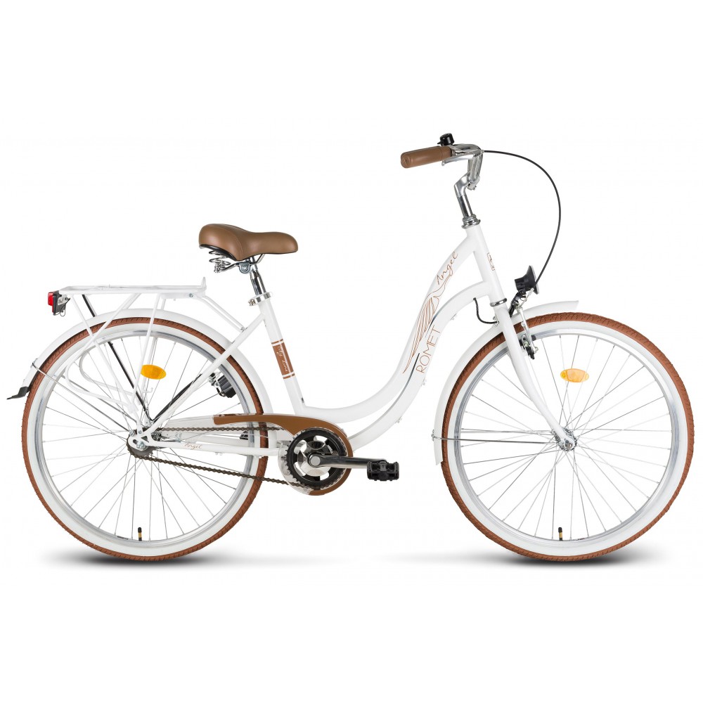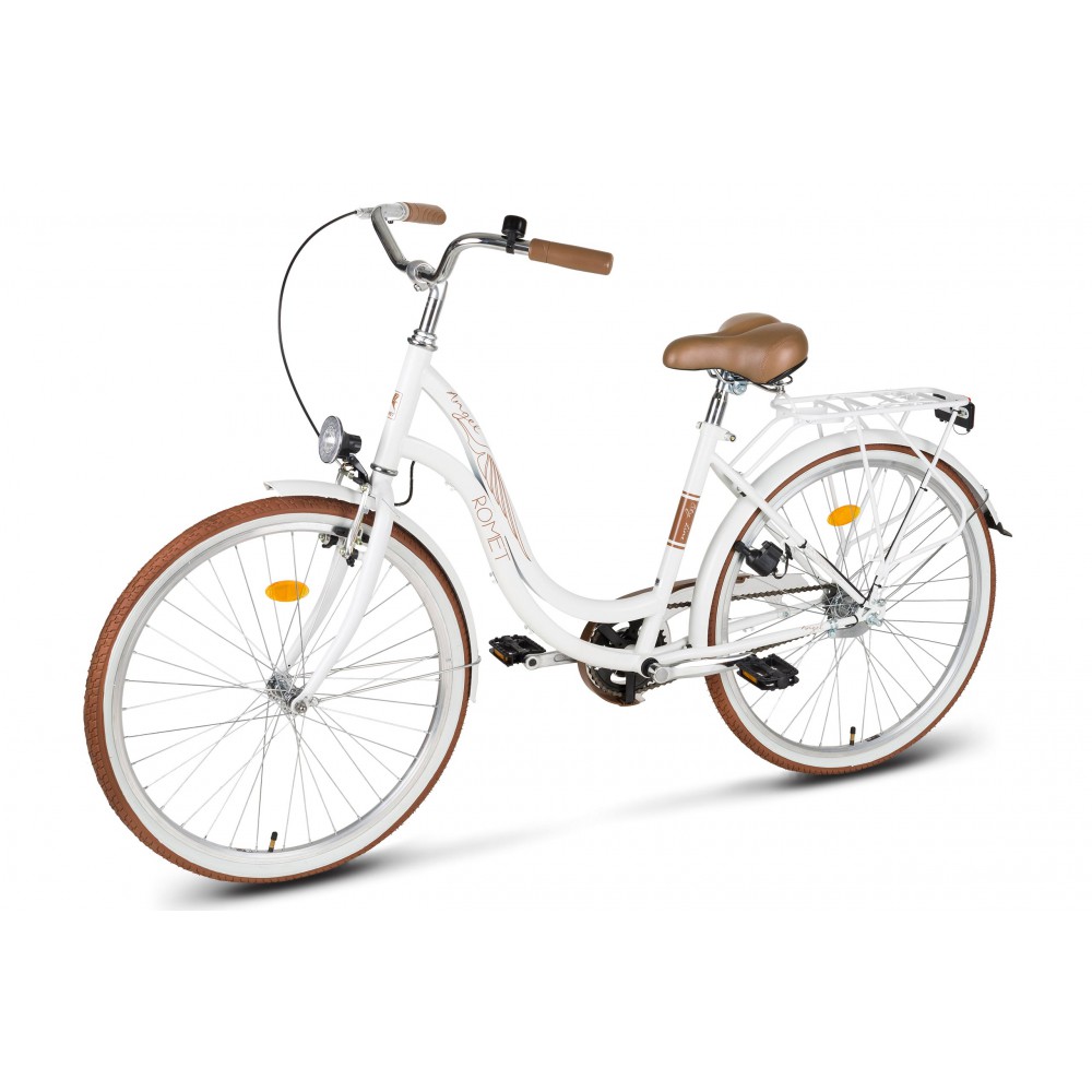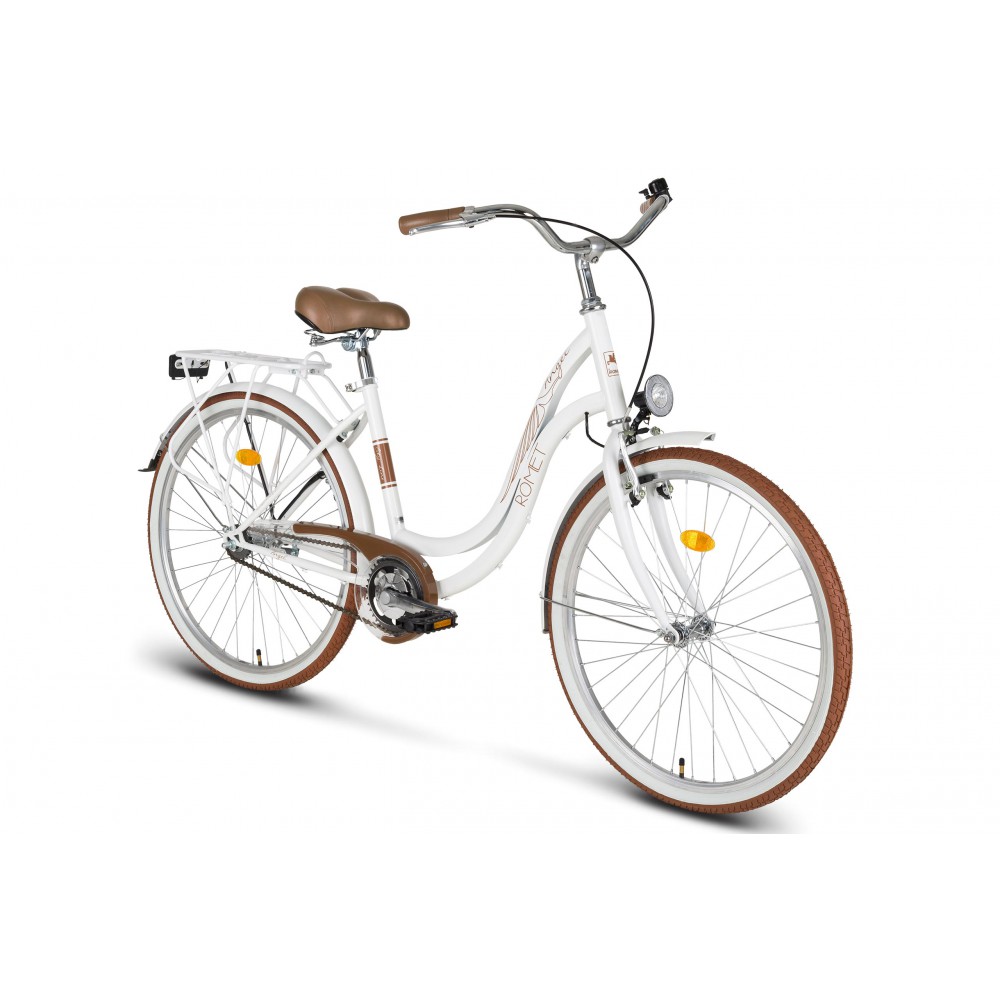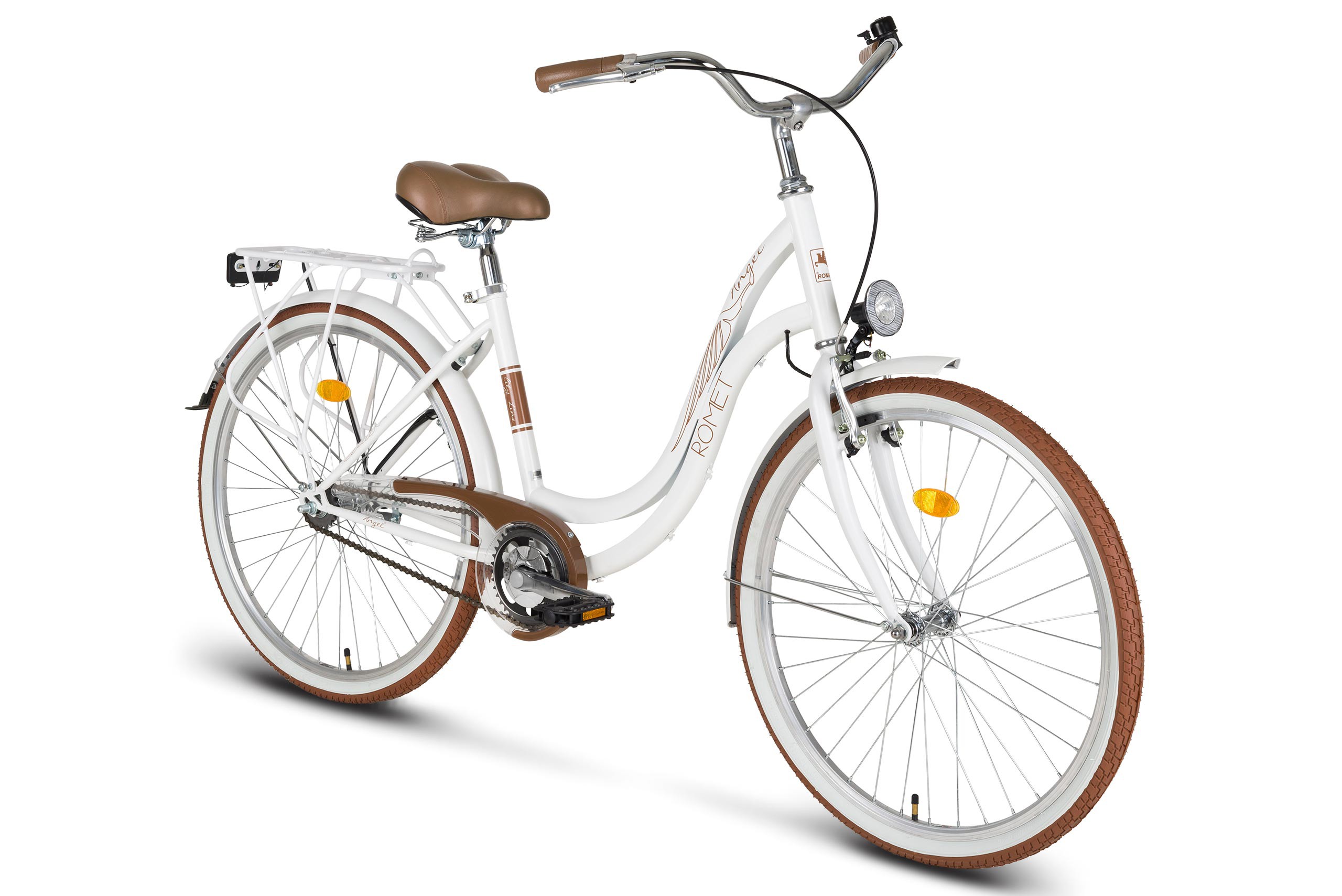 - WYPOSAŻENIE: błotniki winylowe, podpórka, osłona łańcucha, oświetlenie na dynamo, bagażnik, pedały