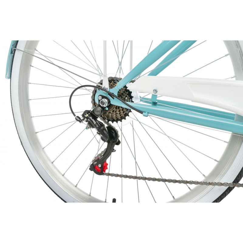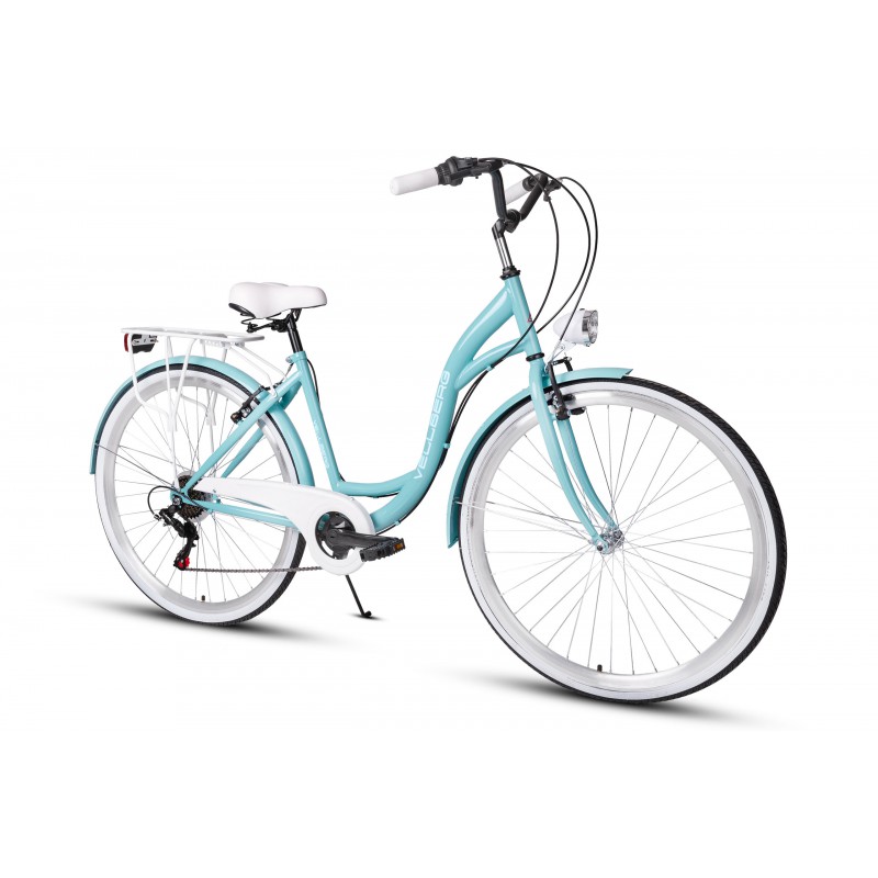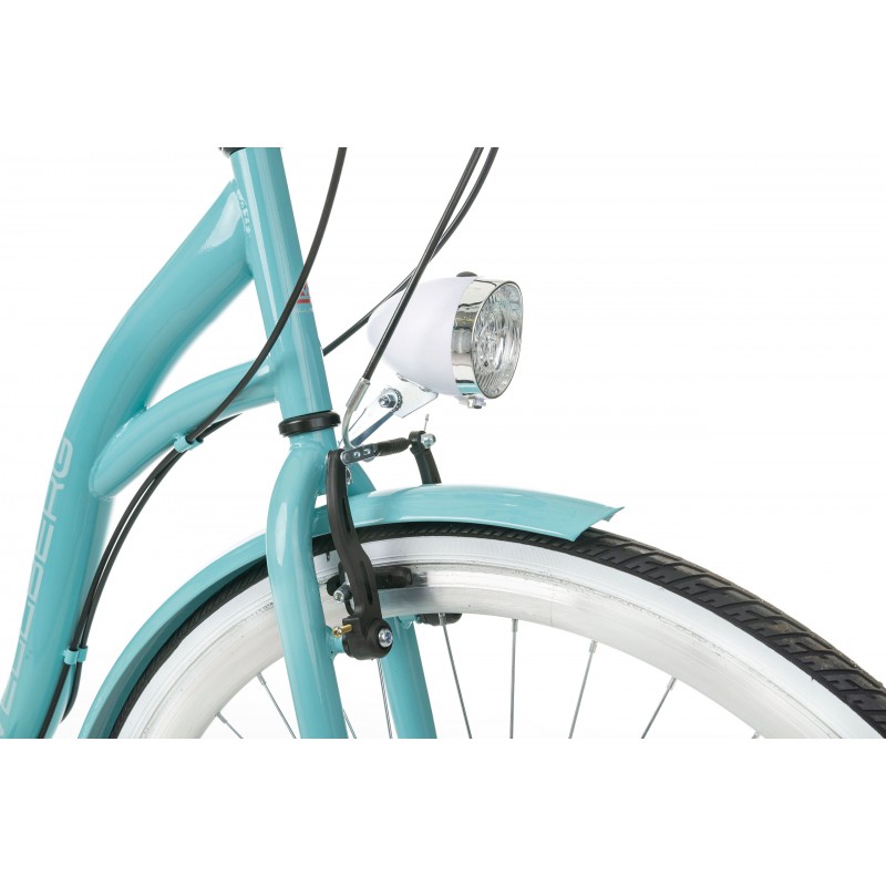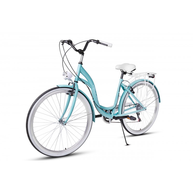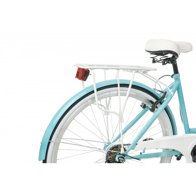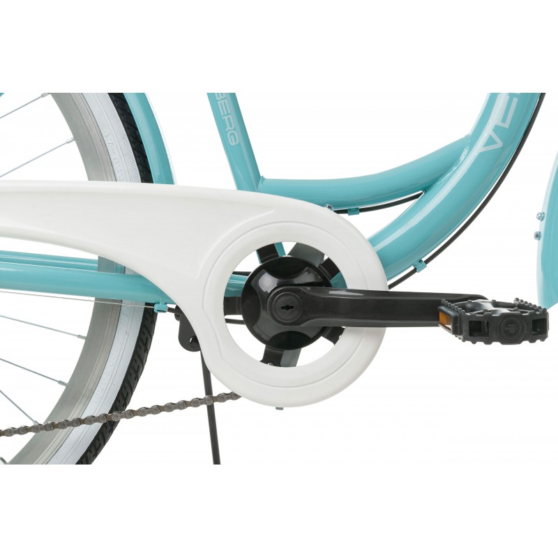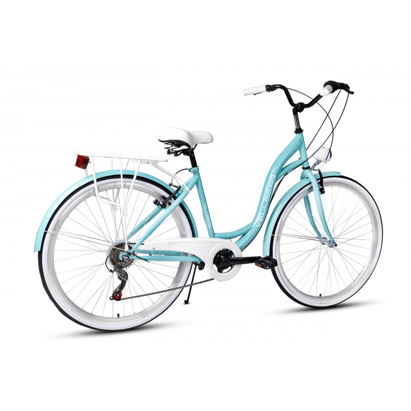Rower Vellberg serii Havana to rower miejski w niecodziennej kolorystyce. 7 biegowa przerzutka Shimano sprawdzi się nie tylko w jeździe miejskie ale również w delikatnym terenie. W porównaniu z rowerami 3 biegowymi jest dużo bardziej wszechstronny a z racji tego zastosowaliśmy bagażnik umożliwiający montaż sakw.