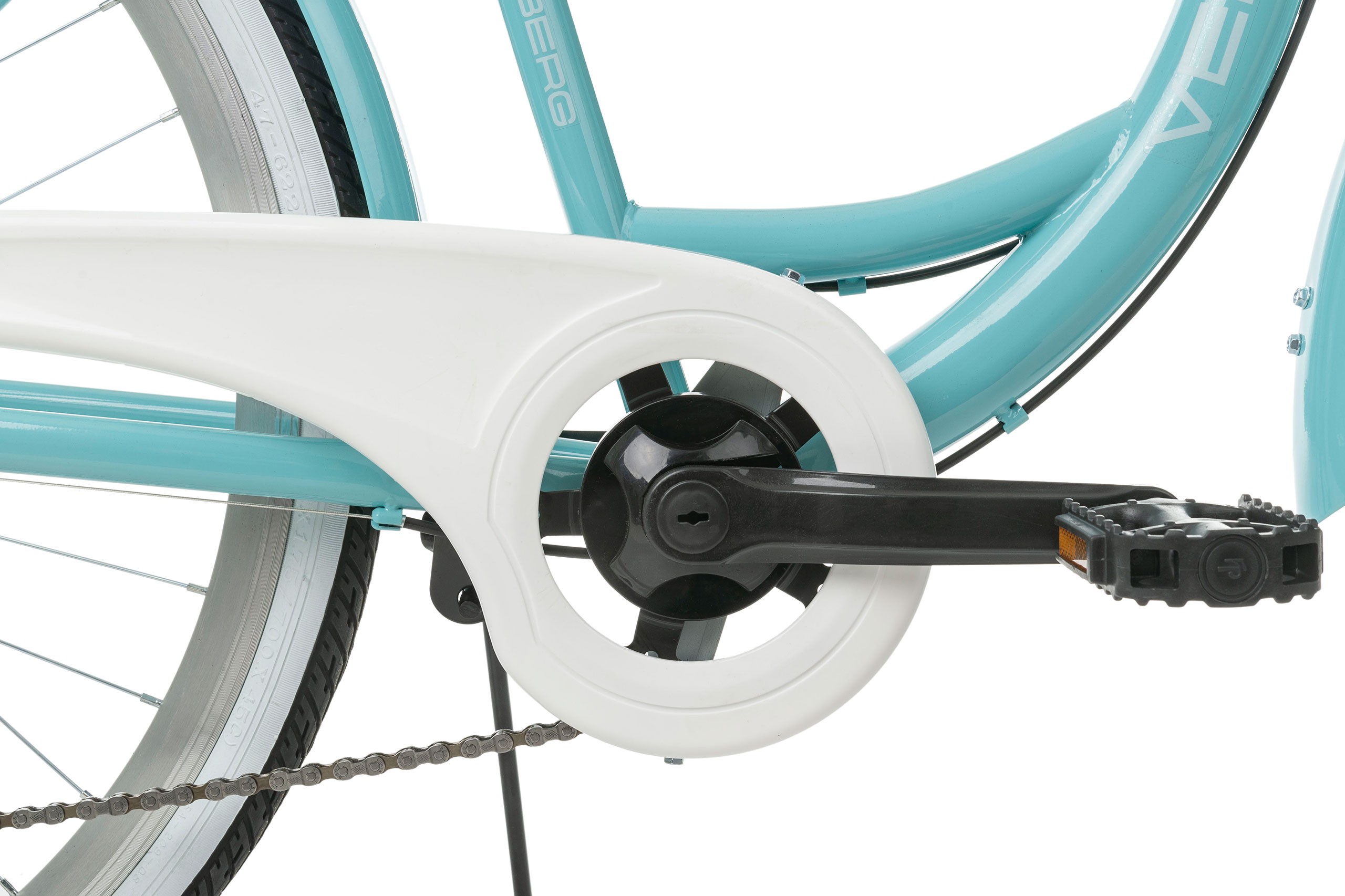 Szerokie, profilowane siodełko zapewnia niezwykły komfort jazdy w warunkach miejskich. Siodełko jest kolorystycznie dopasowane do uchwytów kierownicy i osłony.