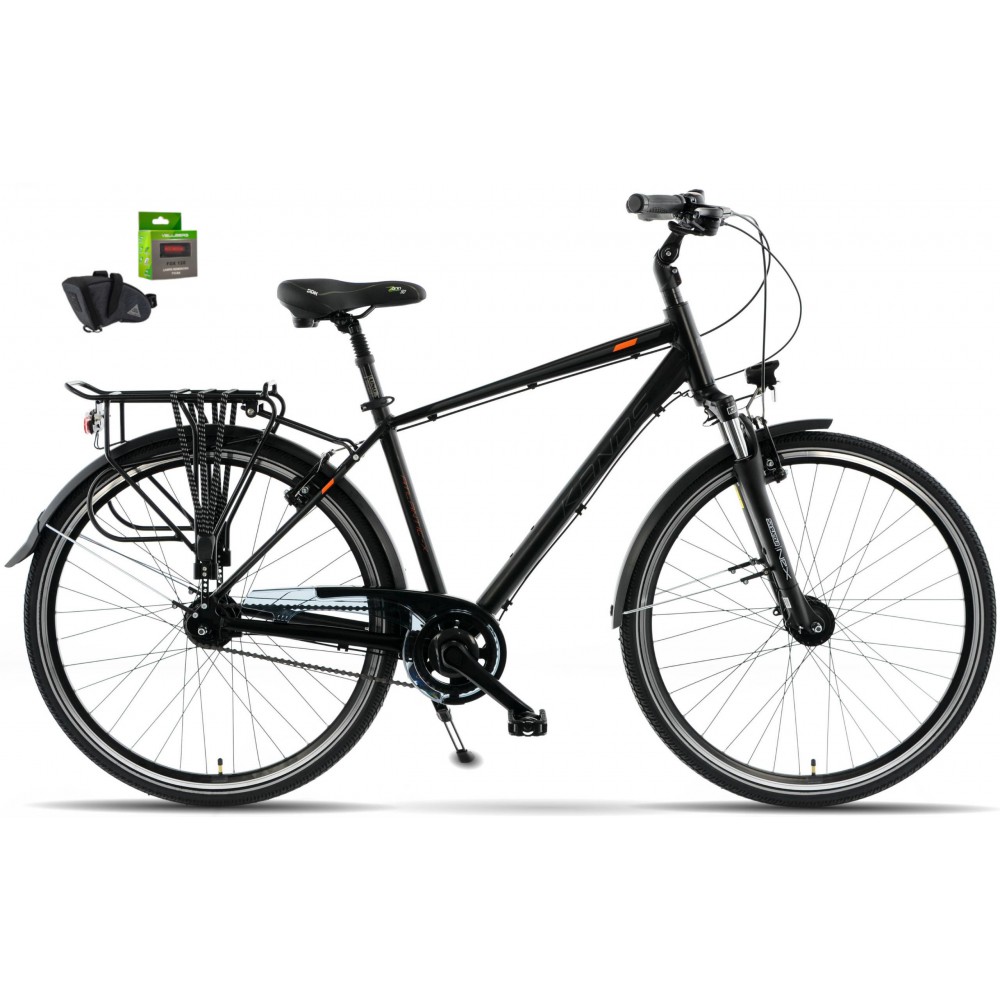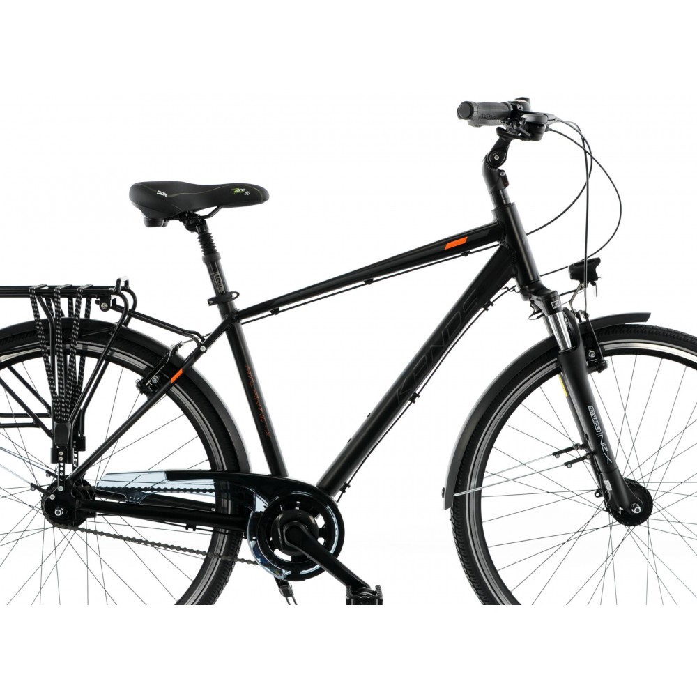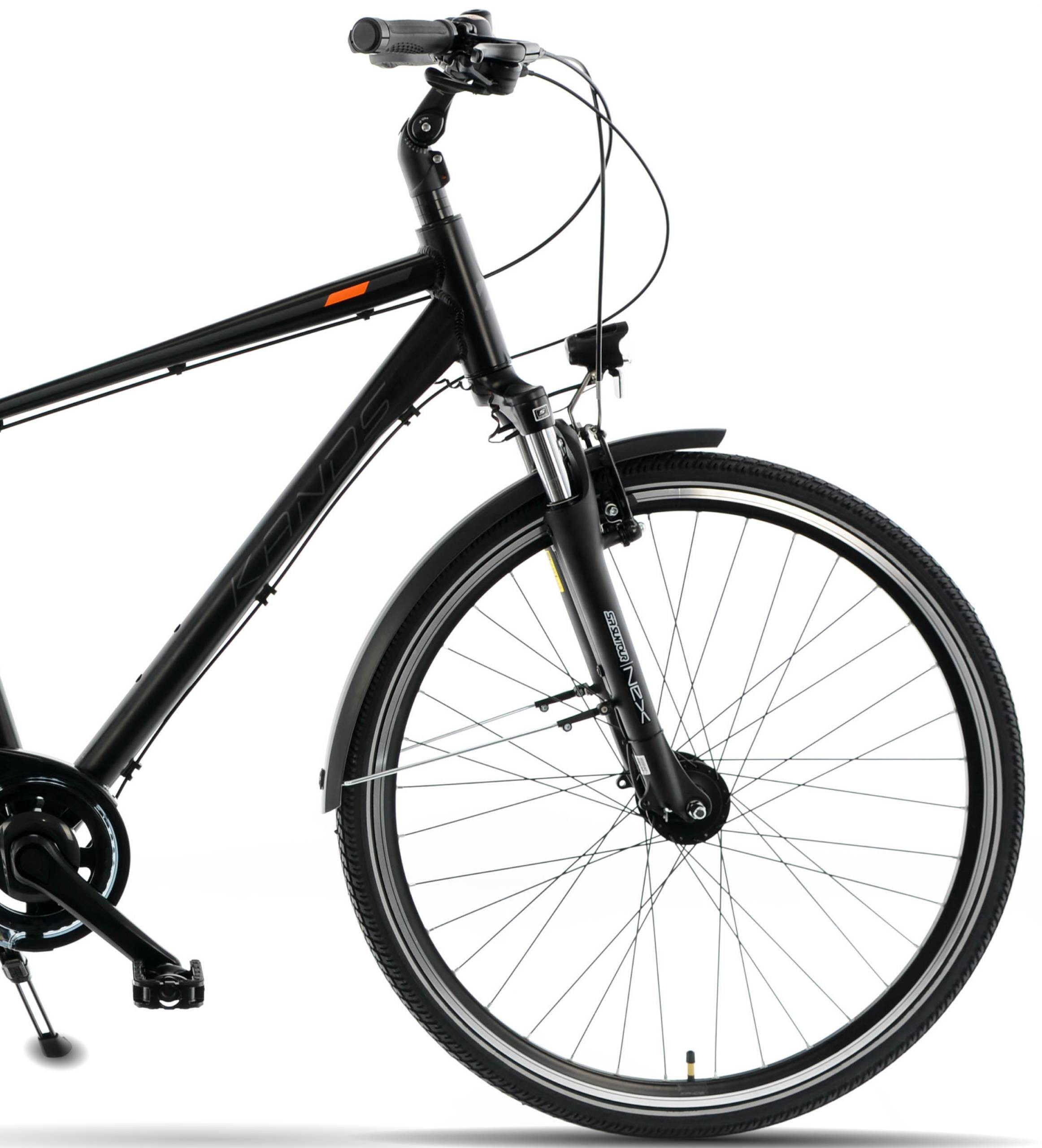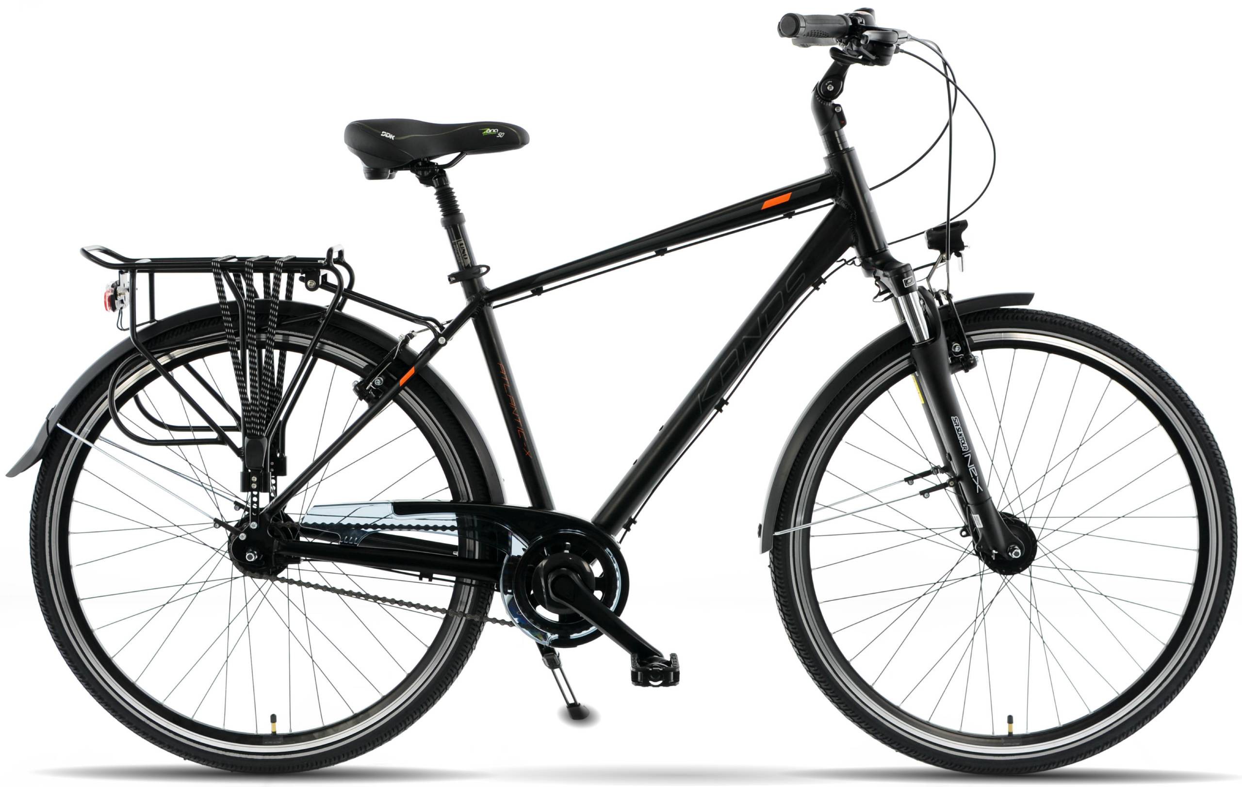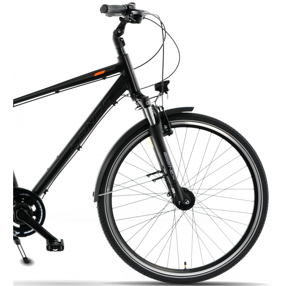 Wybierz rower KANDS ATLANTIC i ciesz się niezawodnością oraz komfortem podczas każdej podróży. Model ten, wyposażony w 28-calowe koła i dwukomorowe obręcze, zapewnia stabilność i płynność jazdy. Dzięki aluminiowej ramie o rozmiarze 19" lub 21" i matowym wykończeniu w kolorze czarno-pomarańczowym lub grafitowym, rower prezentuje się nowocześnie i stylowo. Shimano Nexus 7-biegów gwarantuje intuicyjną zmianę przełożeń, a amortyzowany widelec SUNTOUR NEX oraz siodło z tłumieniem elastomer zapewniają komfort nawet podczas dłuższych tras. Dodatkowe wyposażenie, takie jak bagażnik, błotniki i regulowana podpórka, czyni ten rower idealnym wyborem dla osób ceniących funkcjonalność i wygodę.