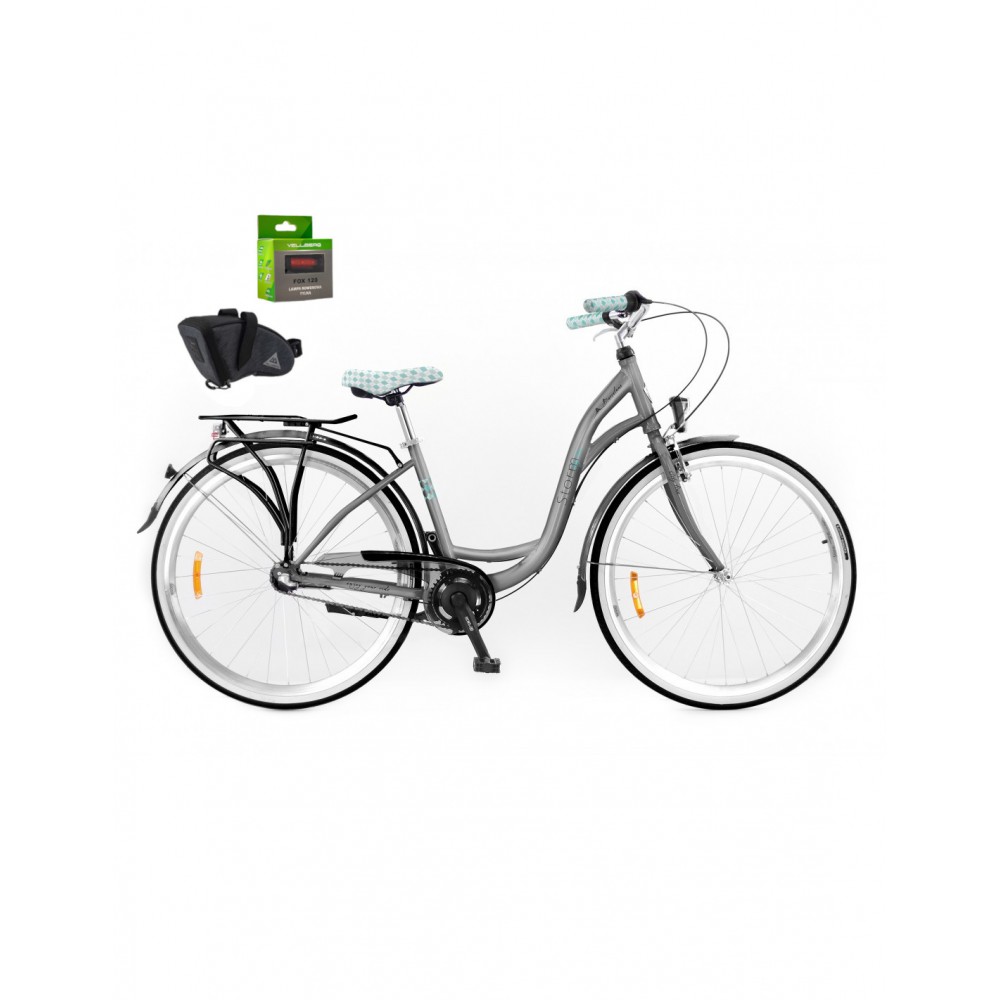 - Rower 28 STORM Barcelona D Nexus-3 to wybór dla tych, którzy szukają niezawodnego i wygodnego roweru miejskiego. Jego stylowy wygląd w kolorze srebrny wyróżnia się na tle innych rowerów miejskich, a piasta Shimano Nexus 3 zapewnia prostotę i efektywność jazdy, idealną do codziennych dojazdów. Wzmacniane obręcze, torpedowy hamulec i oświetlenie bateryjne sprawiają, że rower ten jest gotowy na wszelkie miejskie wyzwania.