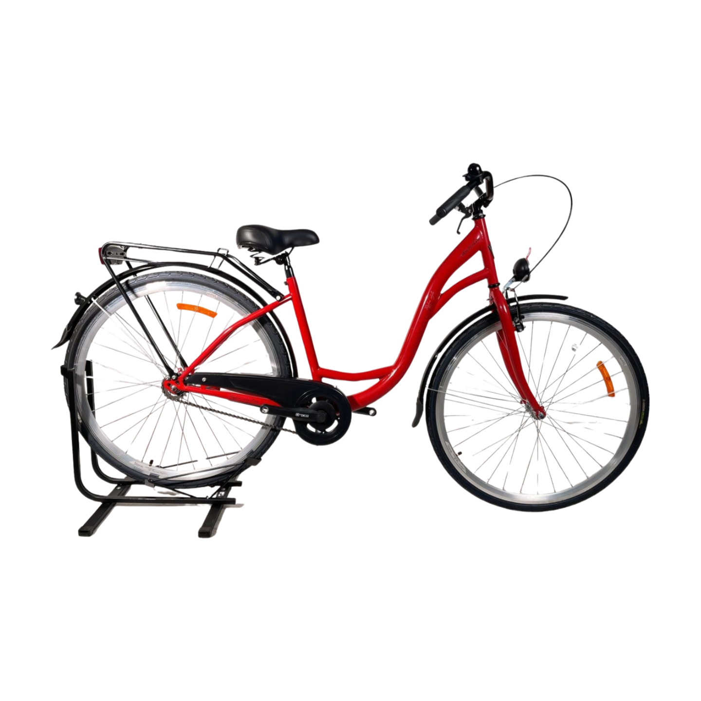 Rower STORM Amsterdam ECO został zaprojektowany z myślą o codziennych potrzebach użytkownika. Zainstalowany bagażnik rurkowy umożliwia wygodne przewożenie torby lub zakupów, a plastikowe błotniki skutecznie chronią przed błotem i wodą. Dodatkowo, osłona łańcucha chroni ubrania, a centralna podpórka zapewnia wygodne parkowanie roweru w dowolnym miejscu.
