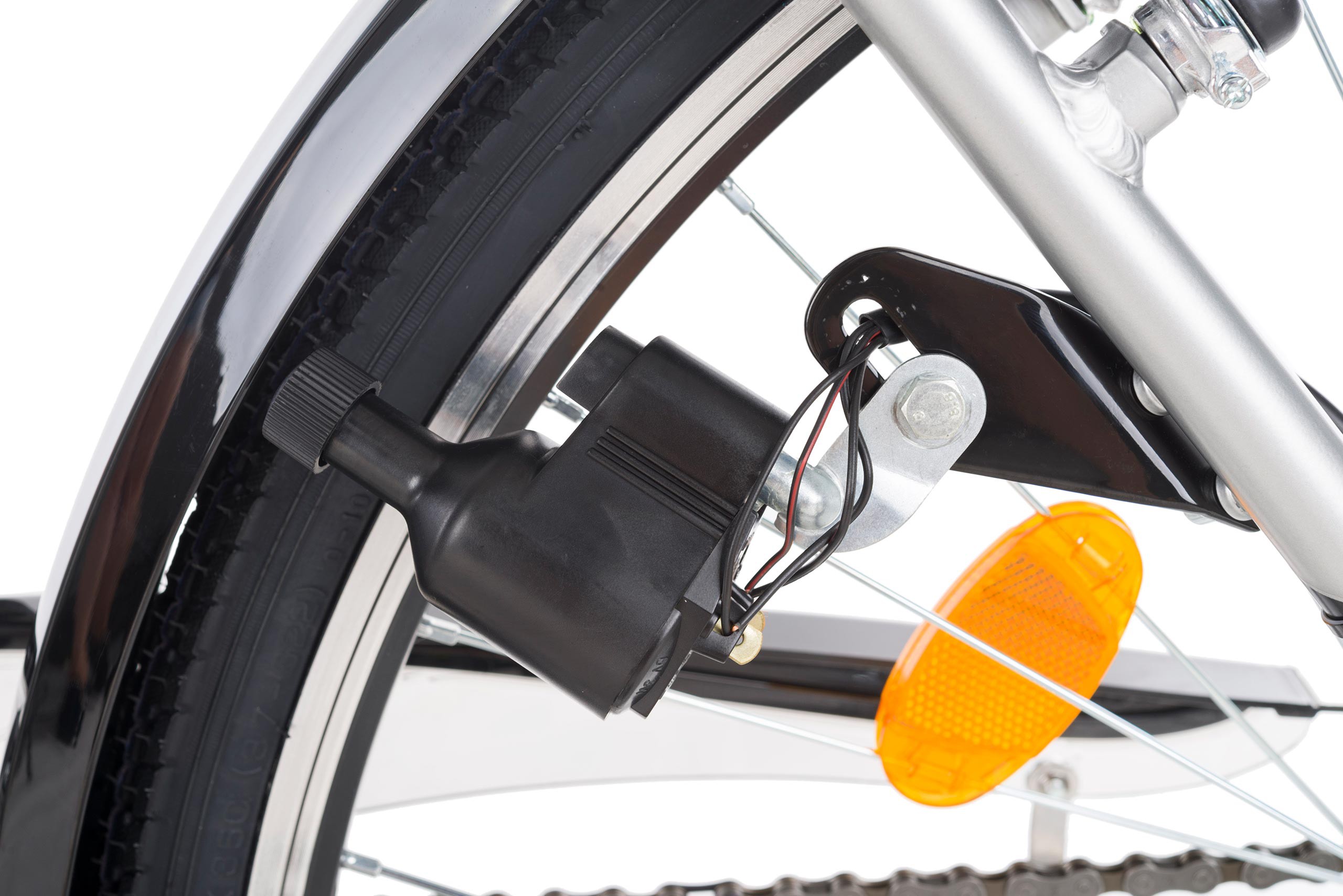 - Jasne światło. Prądnica zapewnia dobre oświetlenie, nawet w nocy. Alternator jest bardzo wydajny i oferuje Ci wysokiej jakości oświetlenie, w niczym nie ustępujące oświetleniu zasilanym bateriami