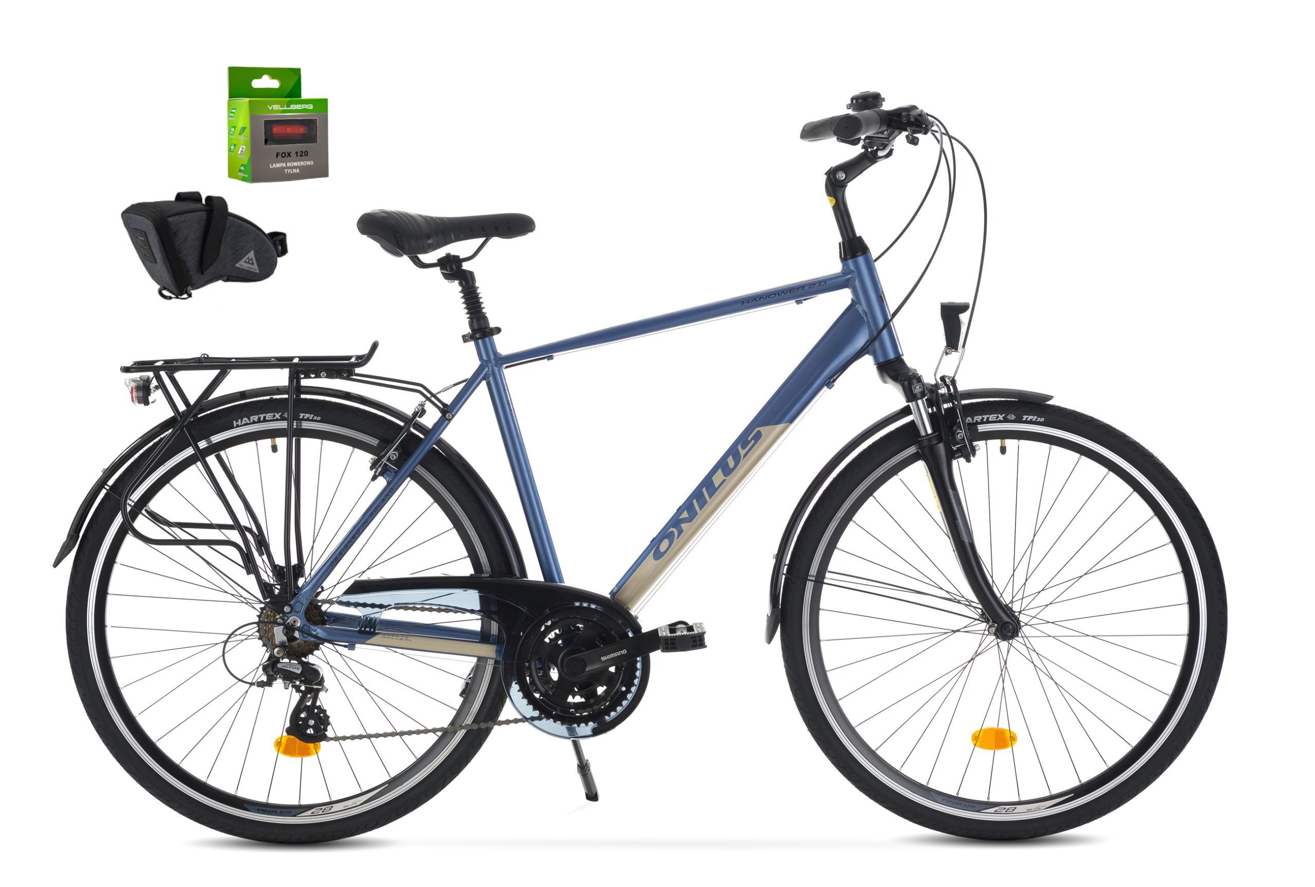 Rower 28 ONILUS HANOWER 2.0 męski 19" niebieski GRATIS sakwa lampka