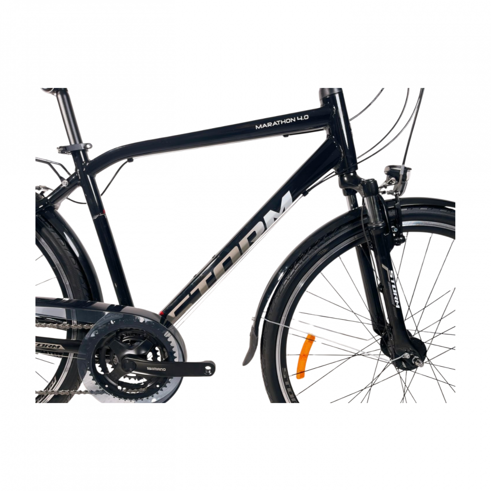 Rower trekkingowy 28 STORM Marathon 4.0 to idealne połączenie komfortu i trwałości. Rama wykonana z lekkiego aluminium T6101 ułatwia jazdę i manewrowanie. Amortyzowany widelec Zoom skutecznie niweluje nierówności terenu, zapewniając płynność i wygodę nawet na dłuższych trasach.