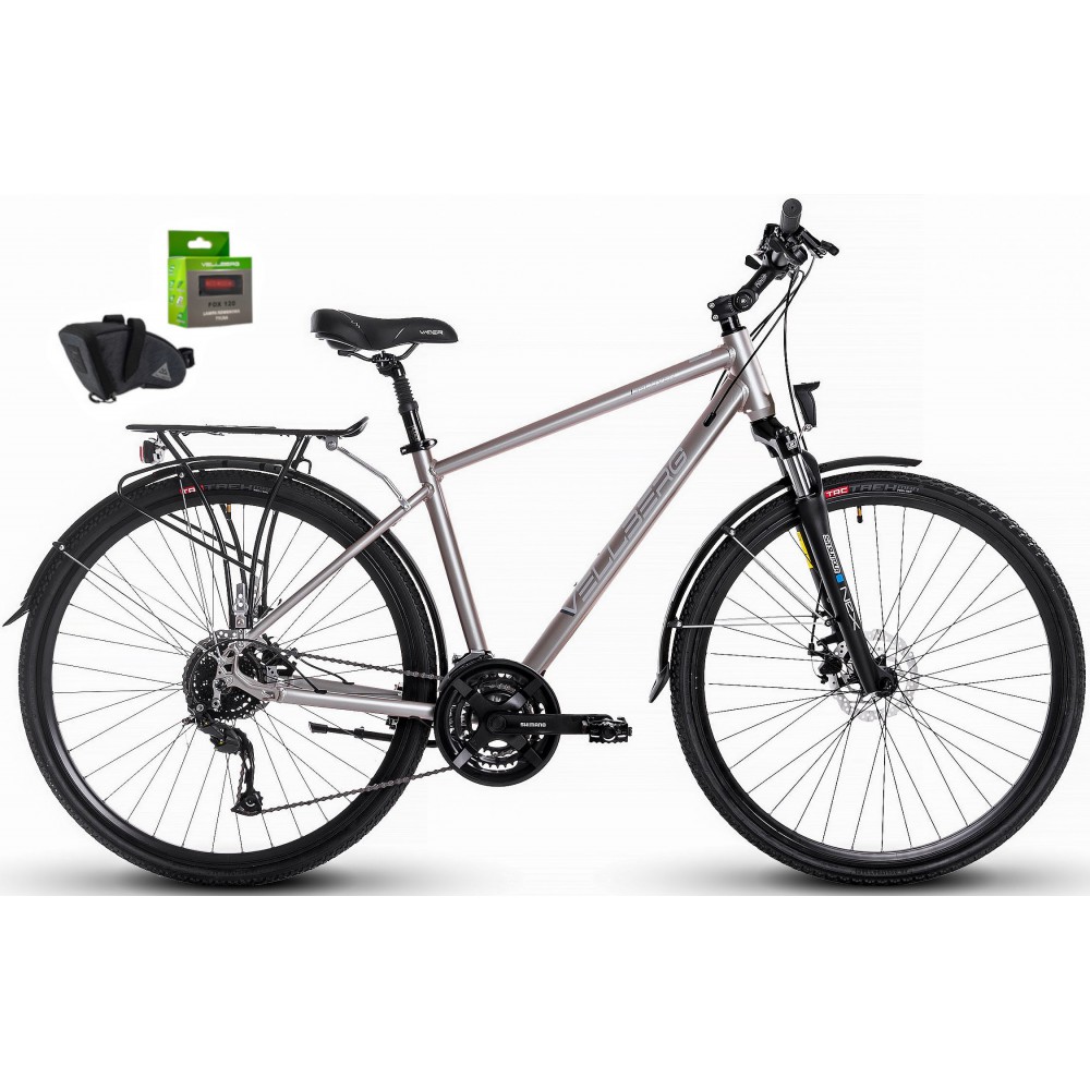 Vellberg DISCOVER 1.0 to rower trekkingowy stworzony z myślą o pokonywaniu leśnych ścieżek oraz miejskich dróg. Zastosowaliśmy amortyzator przedni Suntour Nex z regulacją naprężenia sprężyny. Koło tylne wyposażyliśmy w bębenek który obsługuje kasetę 8 rzędową. Do dyspozycji mamy napęd Shimano 3 x 8. Przerzutka tylna z grupy Alivio oraz przednia Altus. Serce roweru to aluminiowa rama z wewnętrznym prowadzenie linek. Hamulce tarczowe mechaniczne. Wiemy że każdy użytkownik roweru posiada różne parametry ciała dlatego zastosowaliśmy regulowany wspornik kierownicy tak aby każdy mógł dostosować wysokość kierownicy. Aby poprawić komfort jazdy zastosowaliśmy amortyzowany wspornik siodła.