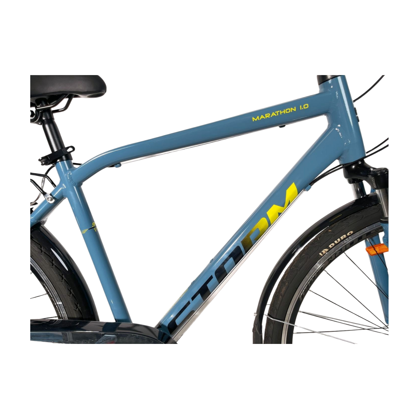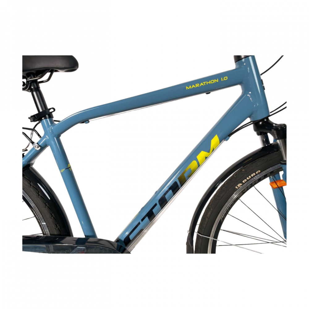 Rower 28 STORM Marathon 1.0 to doskonały wybór dla osób szukających roweru trekkingowego, który łączy lekkość z niezawodnością. Aluminium T6101, z którego wykonano ramę, gwarantuje dużą wytrzymałość przy zachowaniu niskiej wagi, a amortyzowany widelec Zoom zapewnia komfort na nierównych nawierzchniach, dzięki czemu jazda po lesie, szlakach górskich czy miejskich drogach będzie przyjemnością.