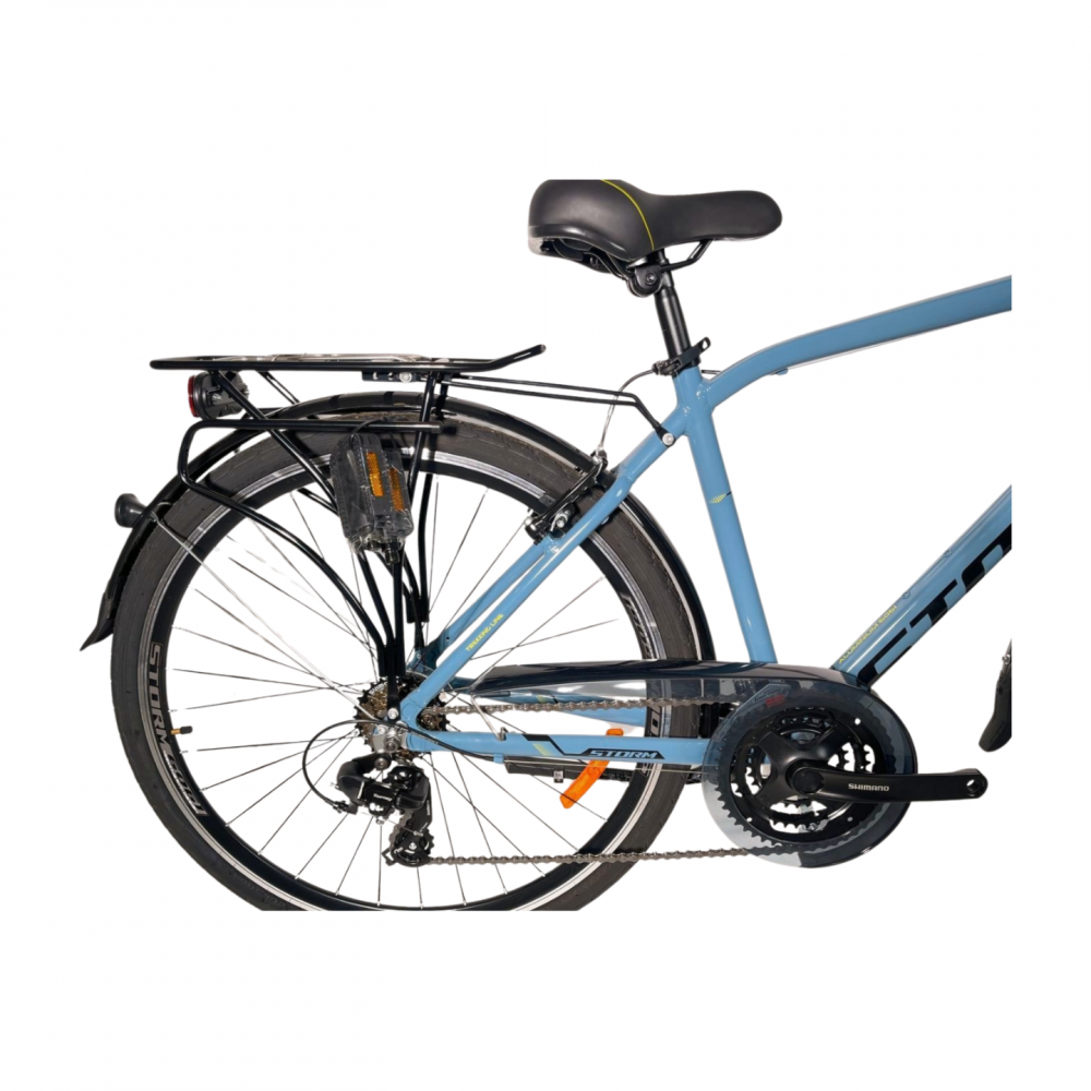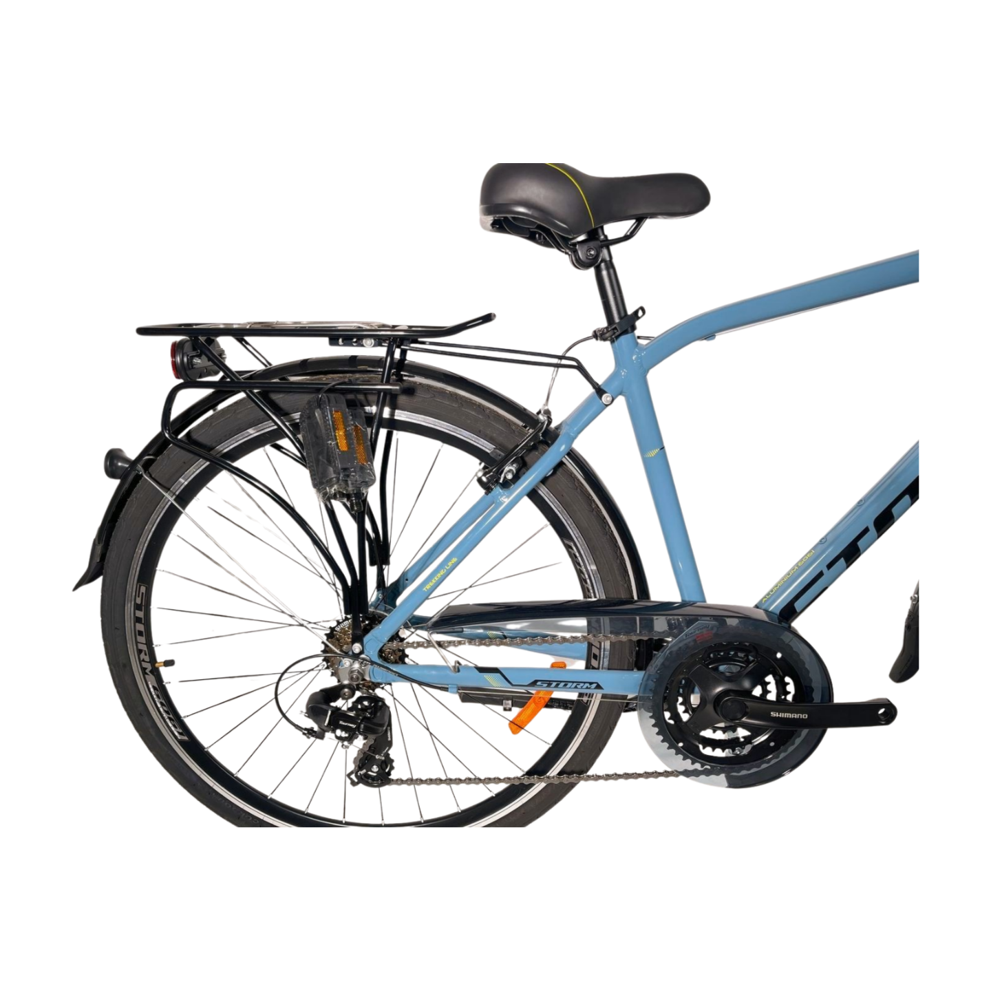 STORM Marathon 1.0 to rower, który oferuje wygodę nie tylko podczas jazdy, ale również w codziennym użytkowaniu. Zainstalowany bagażnik rurkowy umożliwia wygodne przewożenie bagaży, a plastikowe błotniki chronią przed zabrudzeniem w trudniejszych warunkach. Regulowana podpórka pozwala na łatwe parkowanie roweru, a osłona łańcucha Hesling chroni przed zabrudzeniem odzieży.