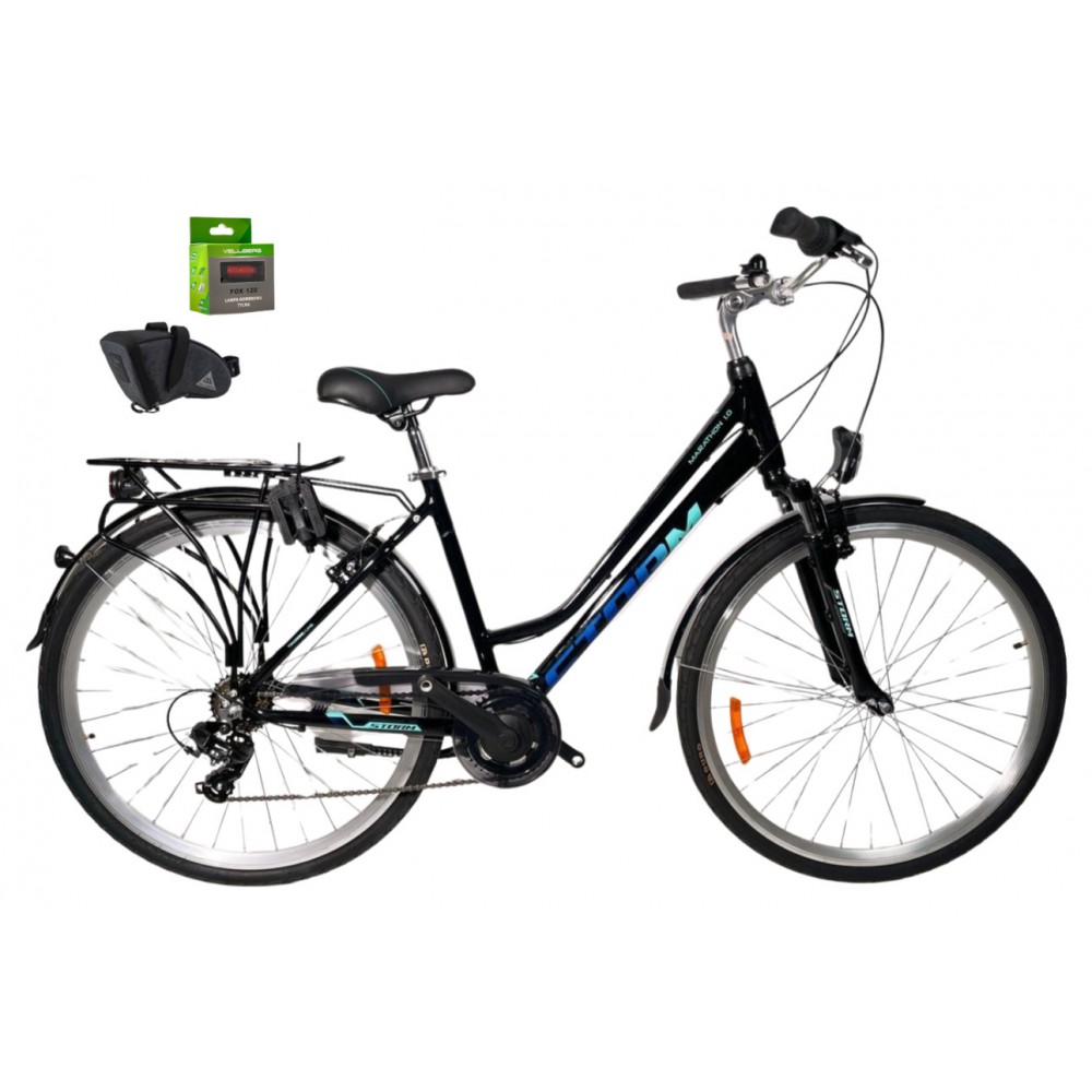 Rower 28 STORM Marathon 1.0 trekking Tourney 19" czarny turkus +GRATIS