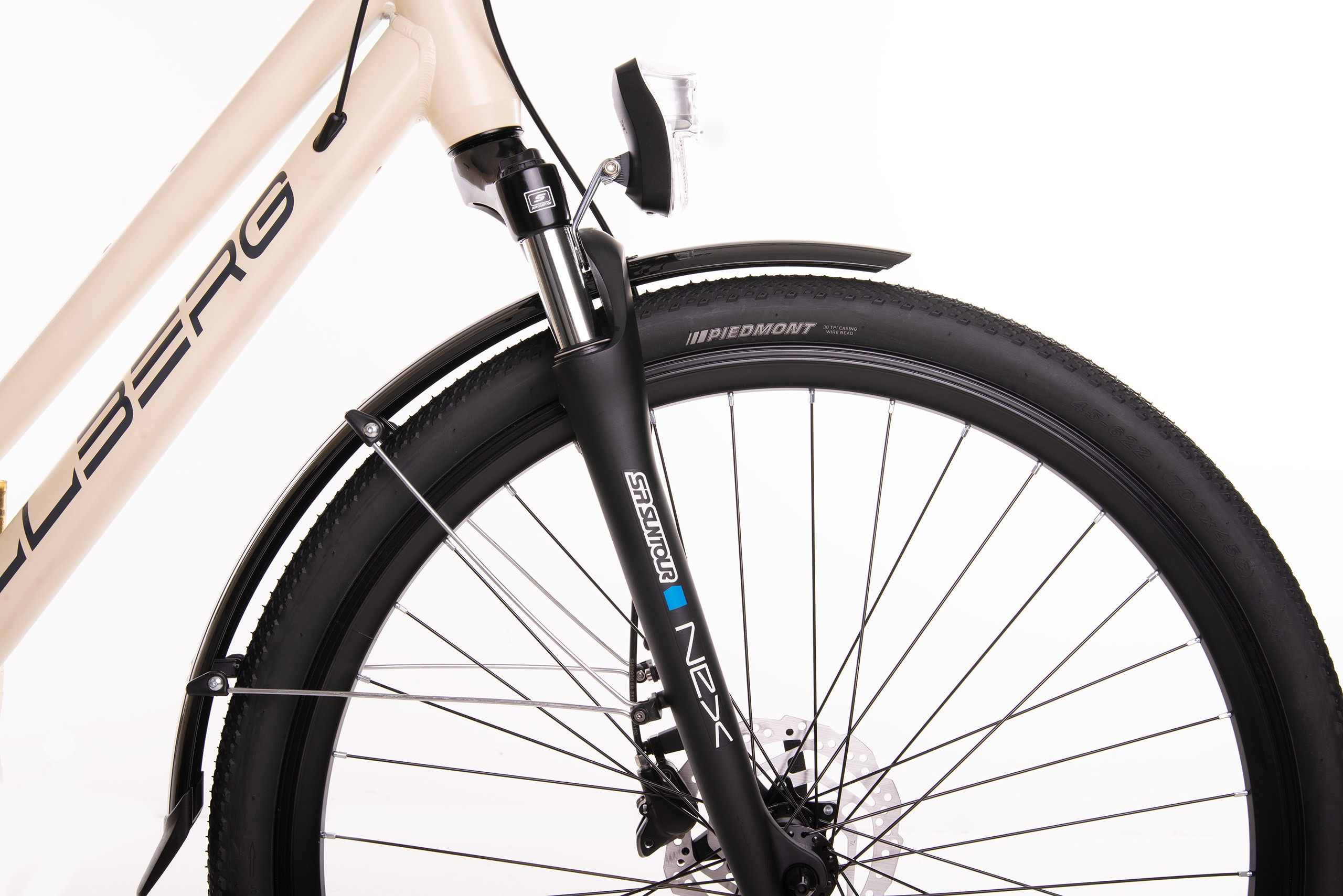 Vellberg DISCOVER 2.0 to rower trekkingowy stworzony z myślą o bardziej wymagających użytkownikach. W porównaniu z jego poprzednikiem, modelem Discover 1.0, wyposażono go w nowoczesne hamulce hydrauliczne, co zapewnia lepszą kontrolę nad pojazdem. Rower jest wyposażony w przedni amortyzator Suntour Nex, który posiada regulację naprężenia sprężyny, co umożliwia dostosowanie jego twardości do indywidualnych potrzeb.