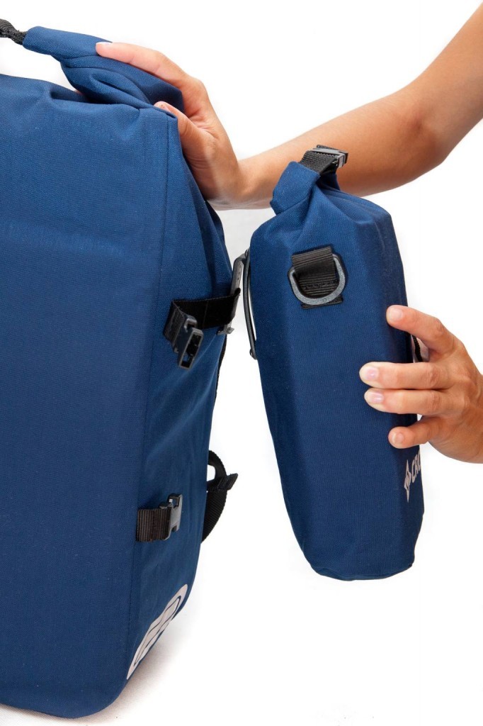 * Odpinane, wodoodporne 3-litrowe kieszenie, które wraz z załączonymi paskami mogą pełnić funkcje niezależnych, wodoodpornych torebek,