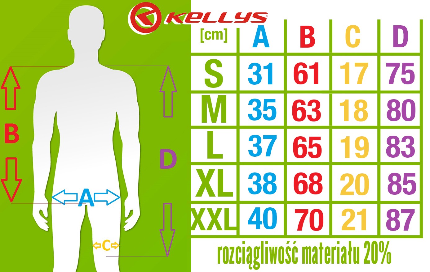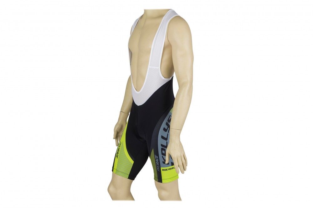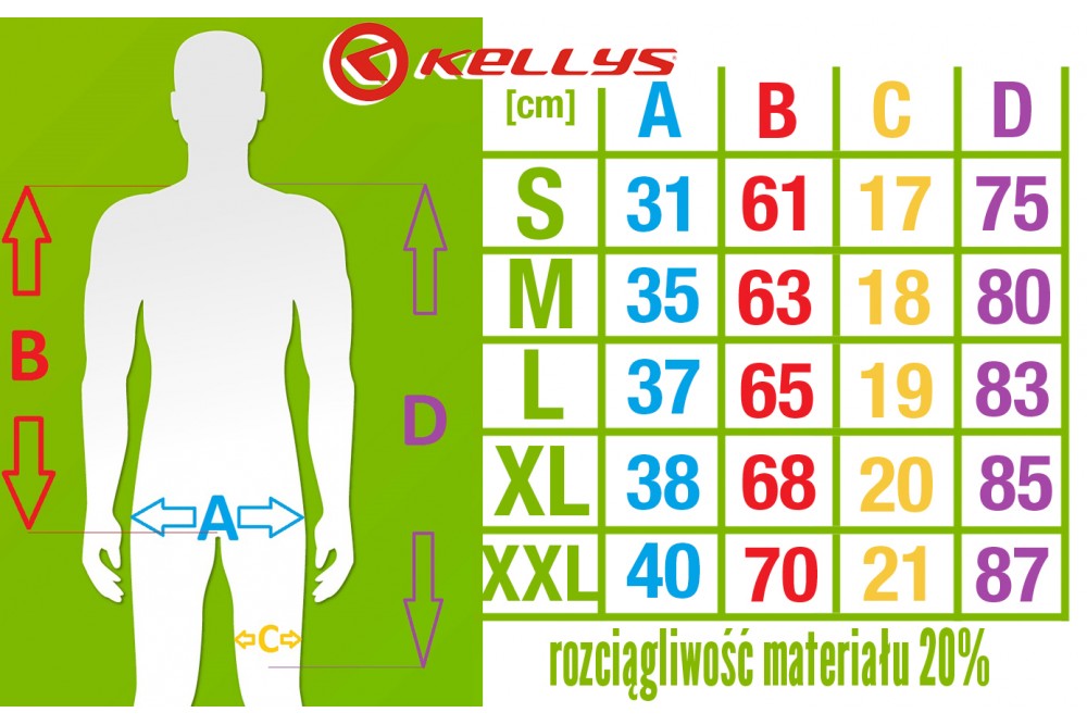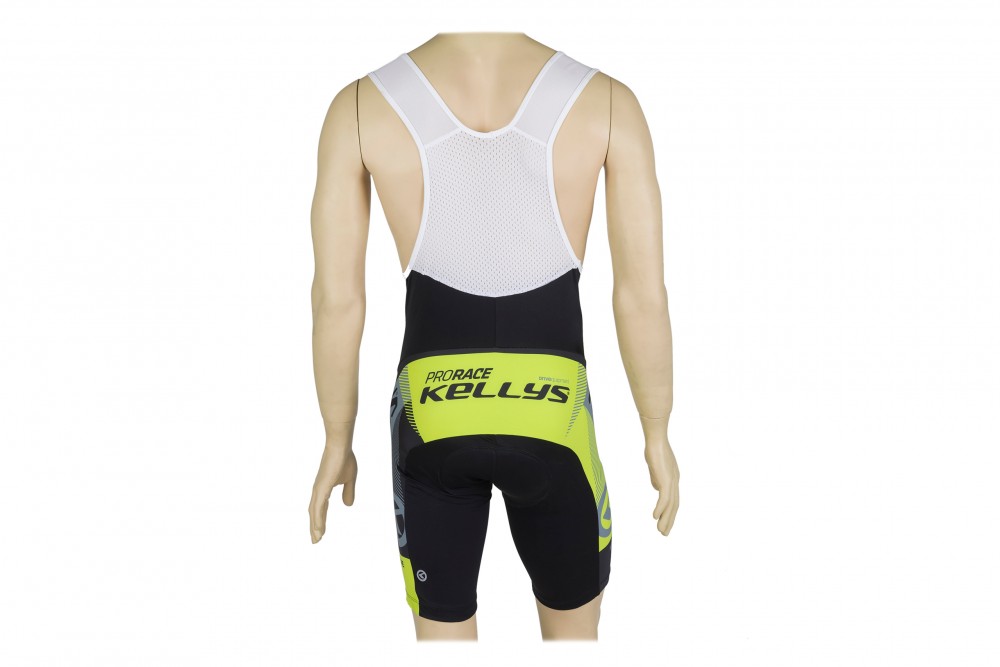 W spodenkach zastosowano anatomicznie ukształtowaną wkładkę, perforowane szelki z przewiewnej tkaniny, antypoślizgowe silikonowe zakończenia nogawek oraz odblaskowe logo KELLYS w tylnej części.
